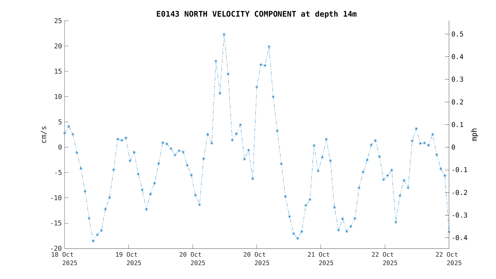 North Current Velocity (14m) | -4.3 cm/s (-0.08 kts) | 2025-10-22 14:00:00 |