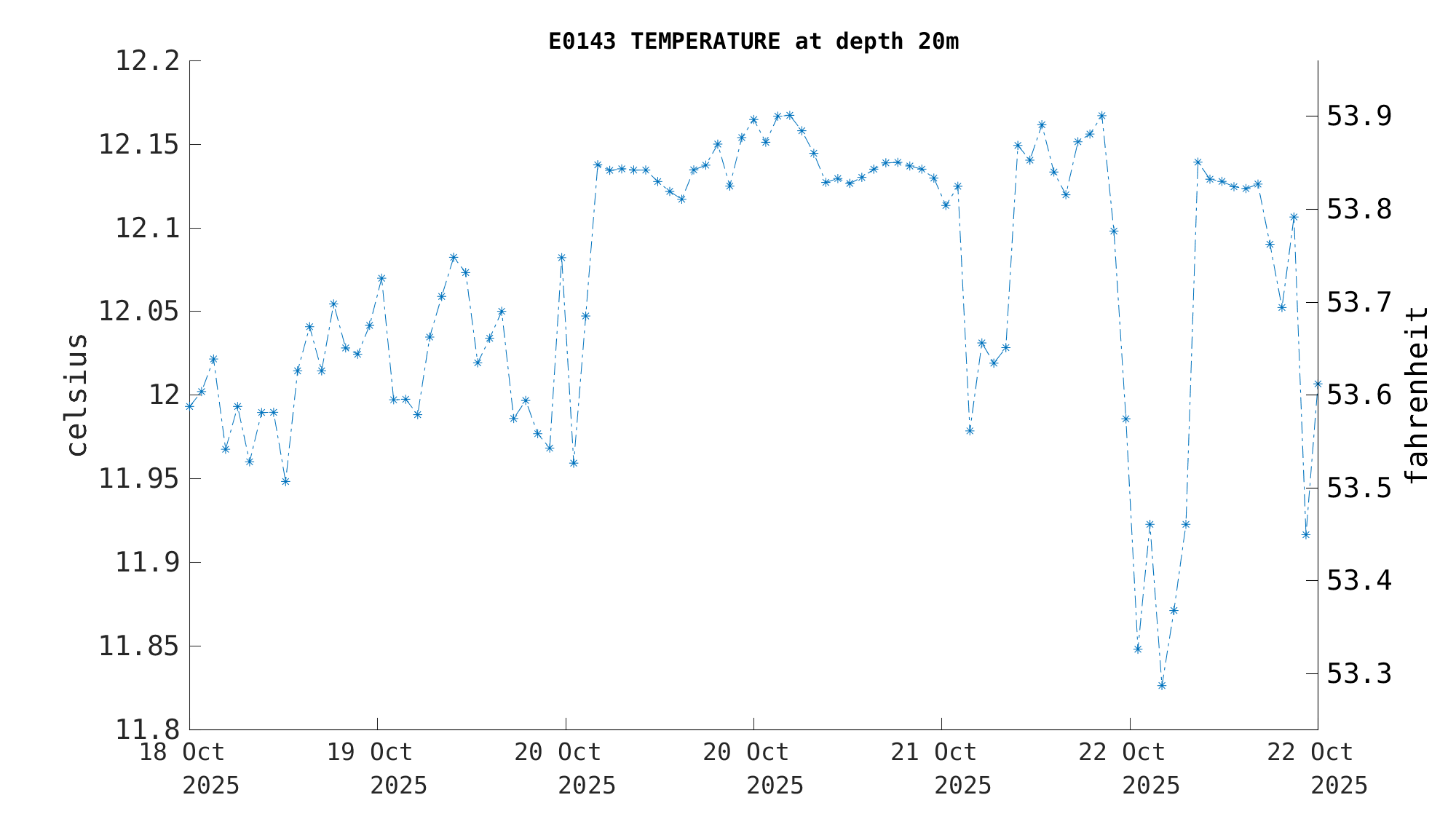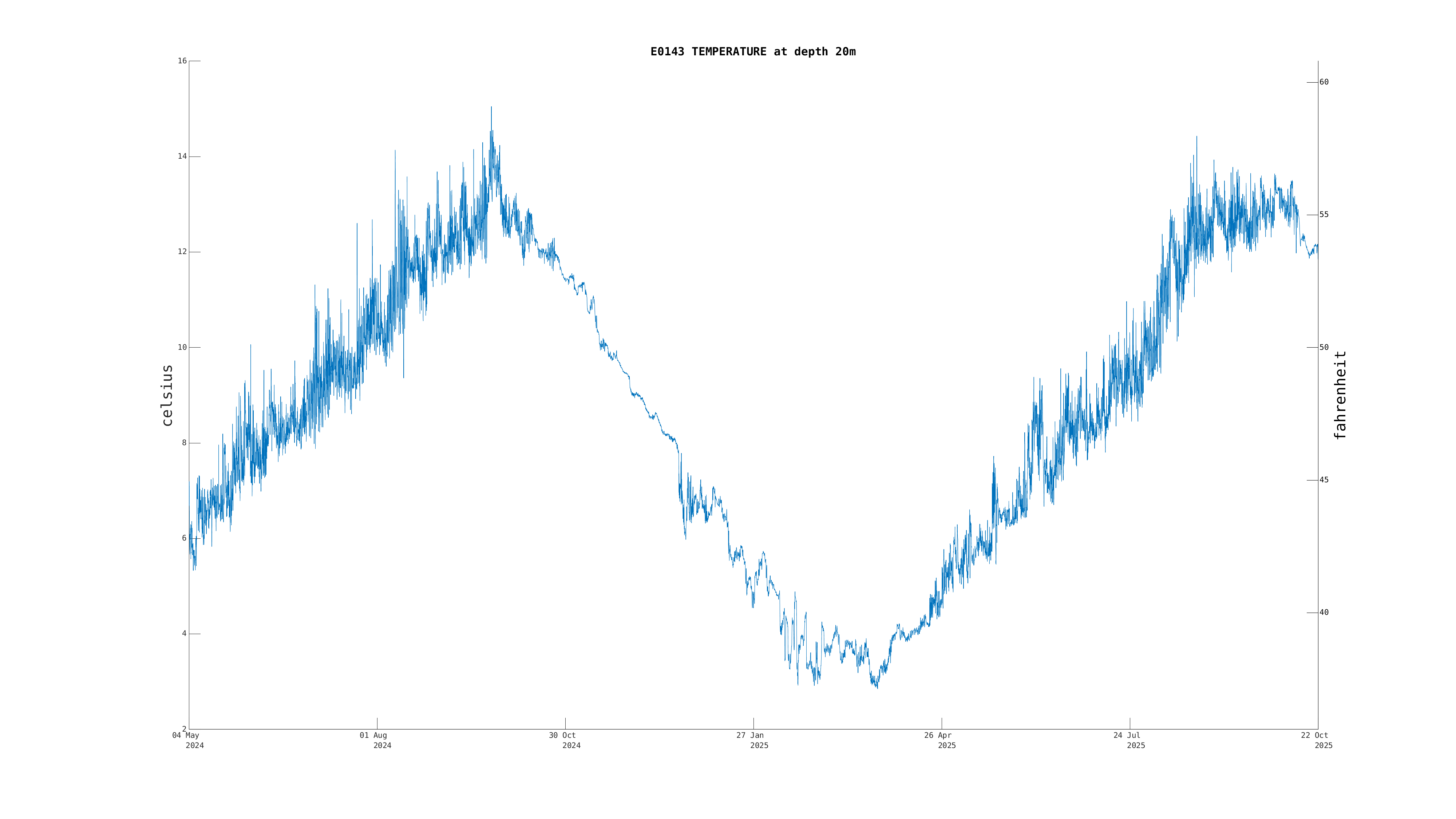 Water Temperature (20m) | 12.1 C (53.8 F) | 2025-10-22 14:00:00 |