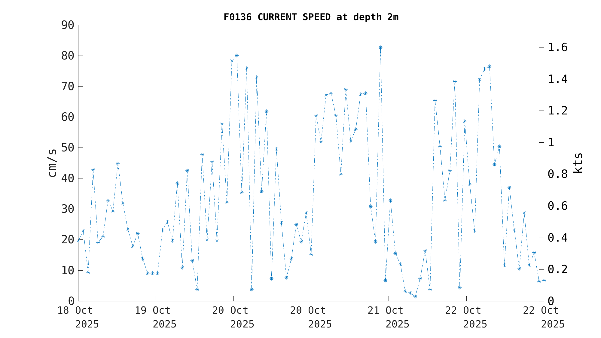 Current Speed (2m) | 15.8 cm/s (0.31 kts) | 2025-10-22 14:00:00 |