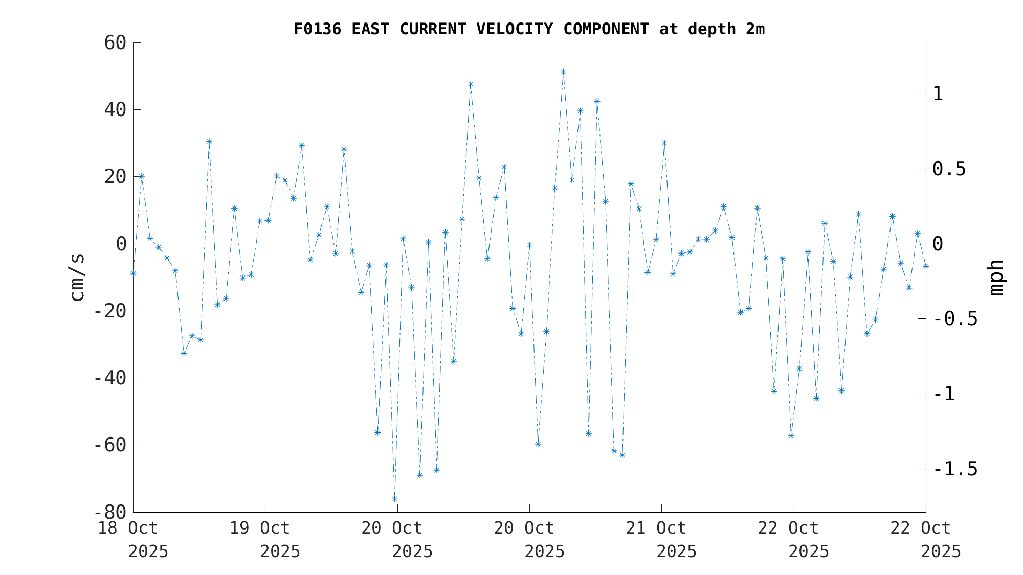 East Current Velocity (2m) | -13.2 cm/s (-0.26 kts) | 2025-10-22 14:00:00 |