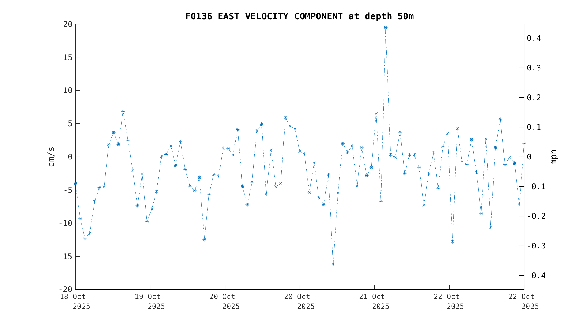 East Current Velocity (50m) | -1.0 cm/s (-0.02 kts) | 2025-10-22 14:00:00 |