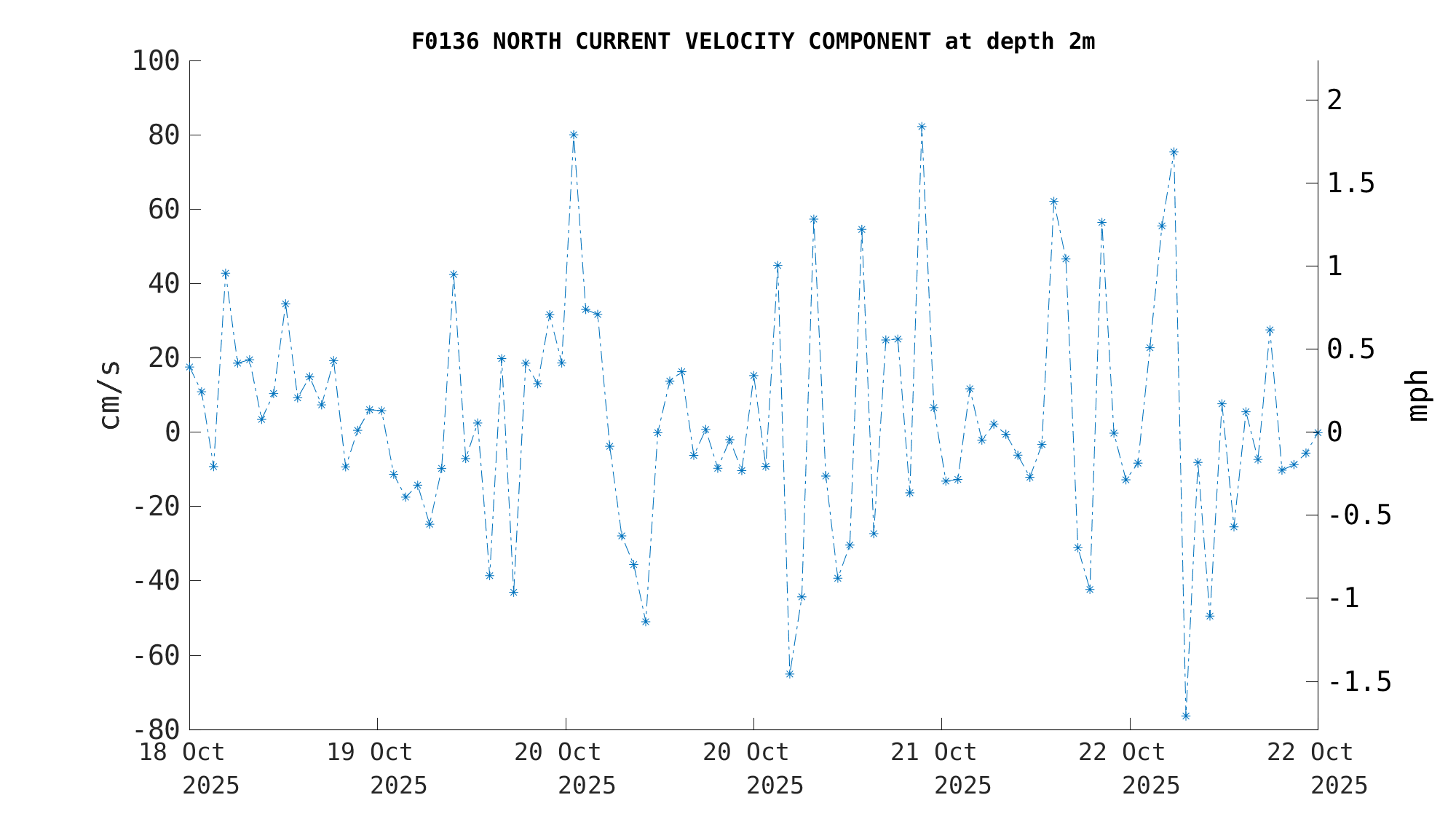 North Current Velocity (2m) | -8.7 cm/s (-0.17 kts) | 2025-10-22 14:00:00 |