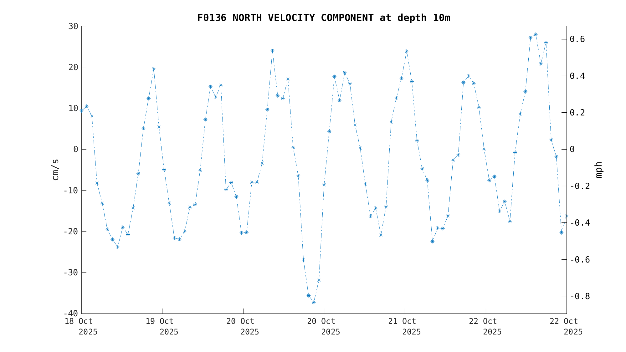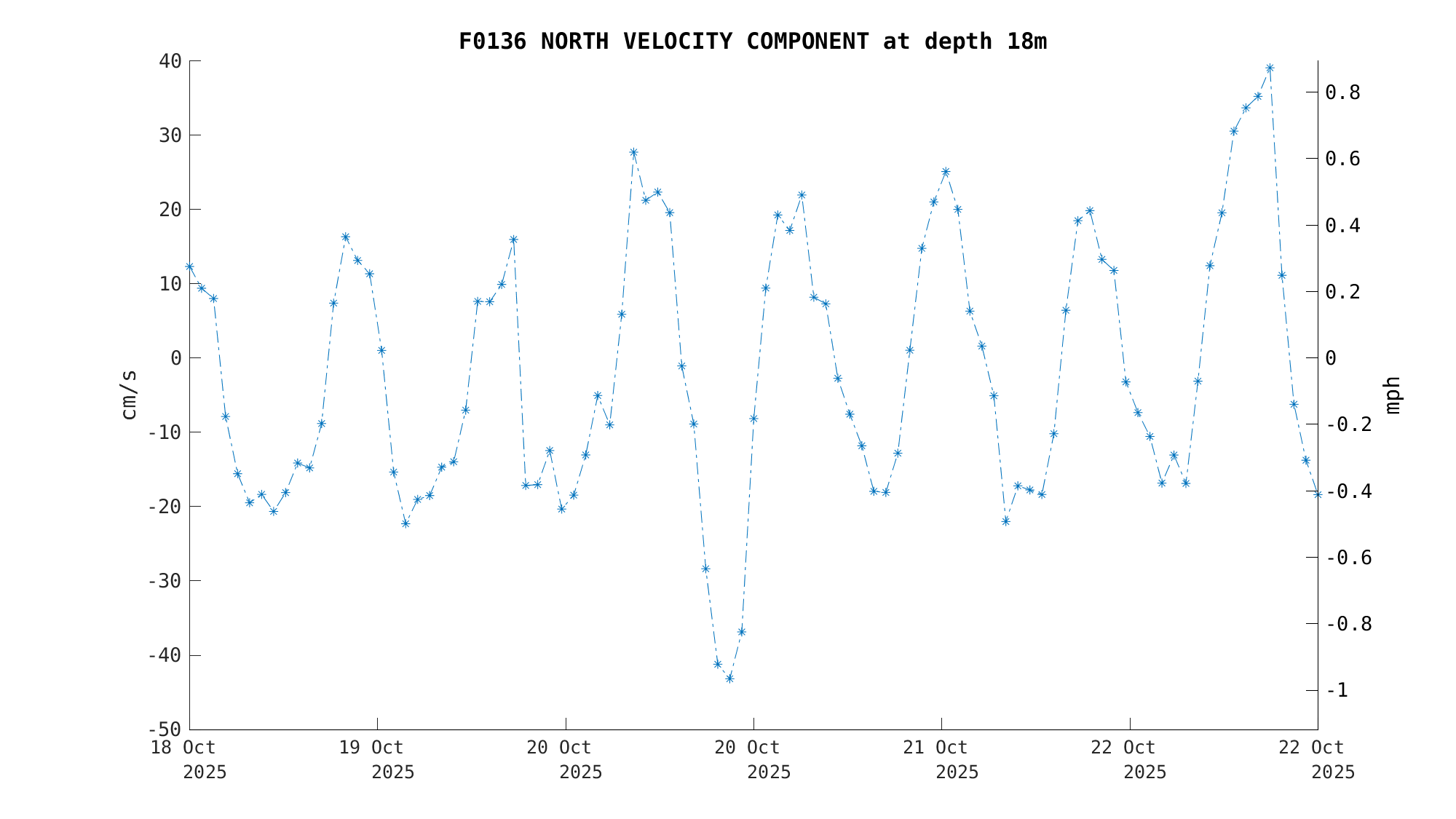 North Current Velocity (18m) | -6.2 cm/s (-0.12 kts) | 2025-10-22 14:00:00 |