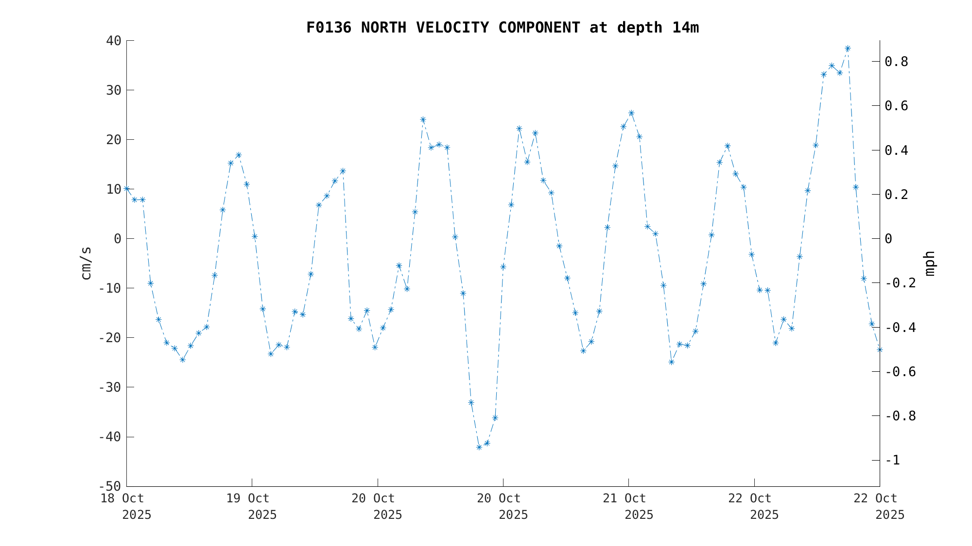 North Current Velocity (14m) | -8.1 cm/s (-0.16 kts) | 2025-10-22 14:00:00 |