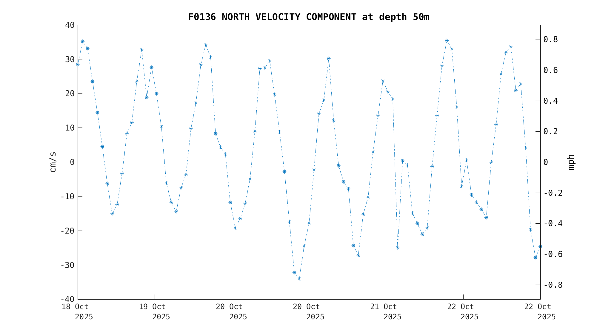 North Current Velocity (50m) | -19.7 cm/s (-0.38 kts) | 2025-10-22 14:00:00 |