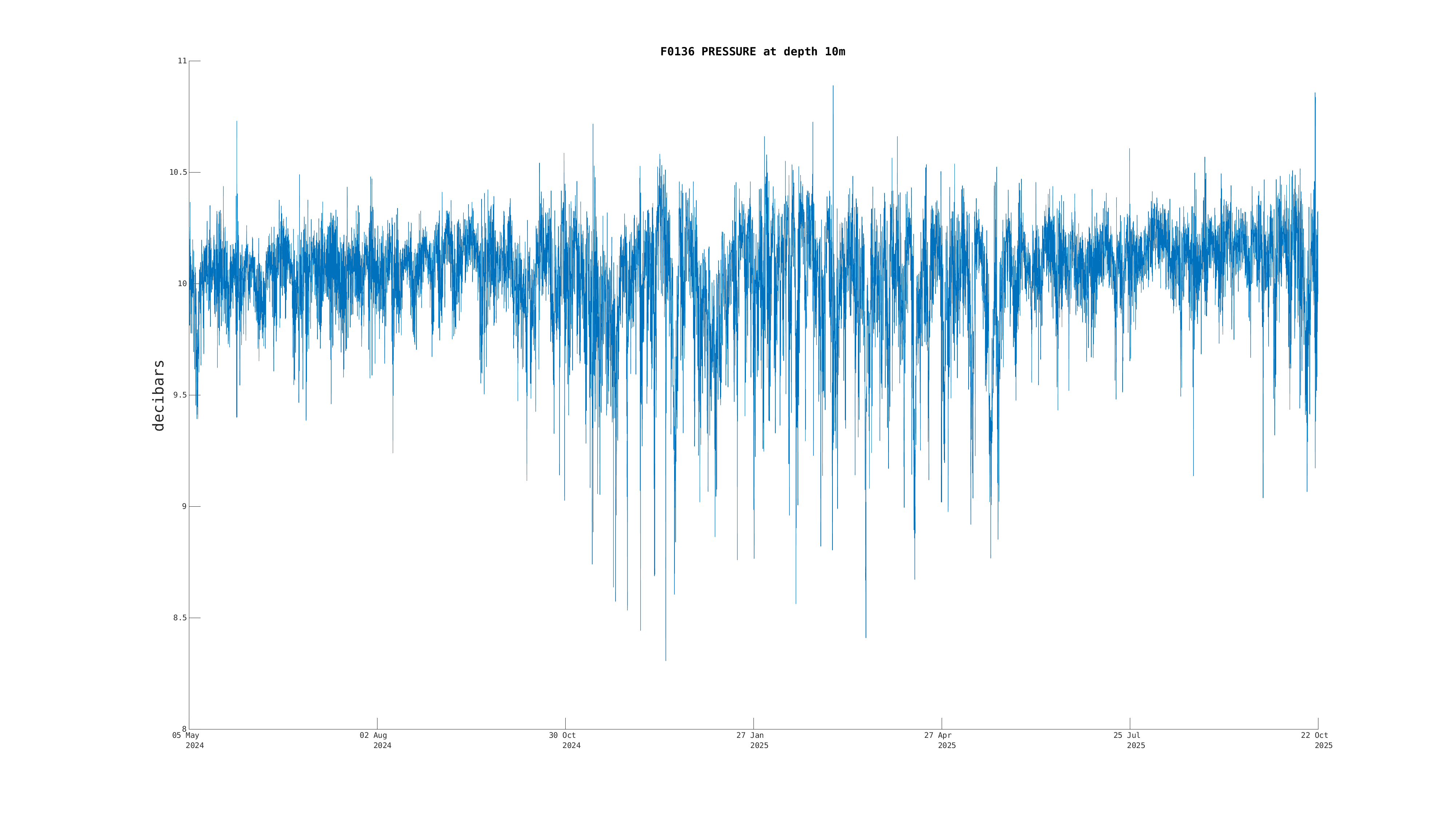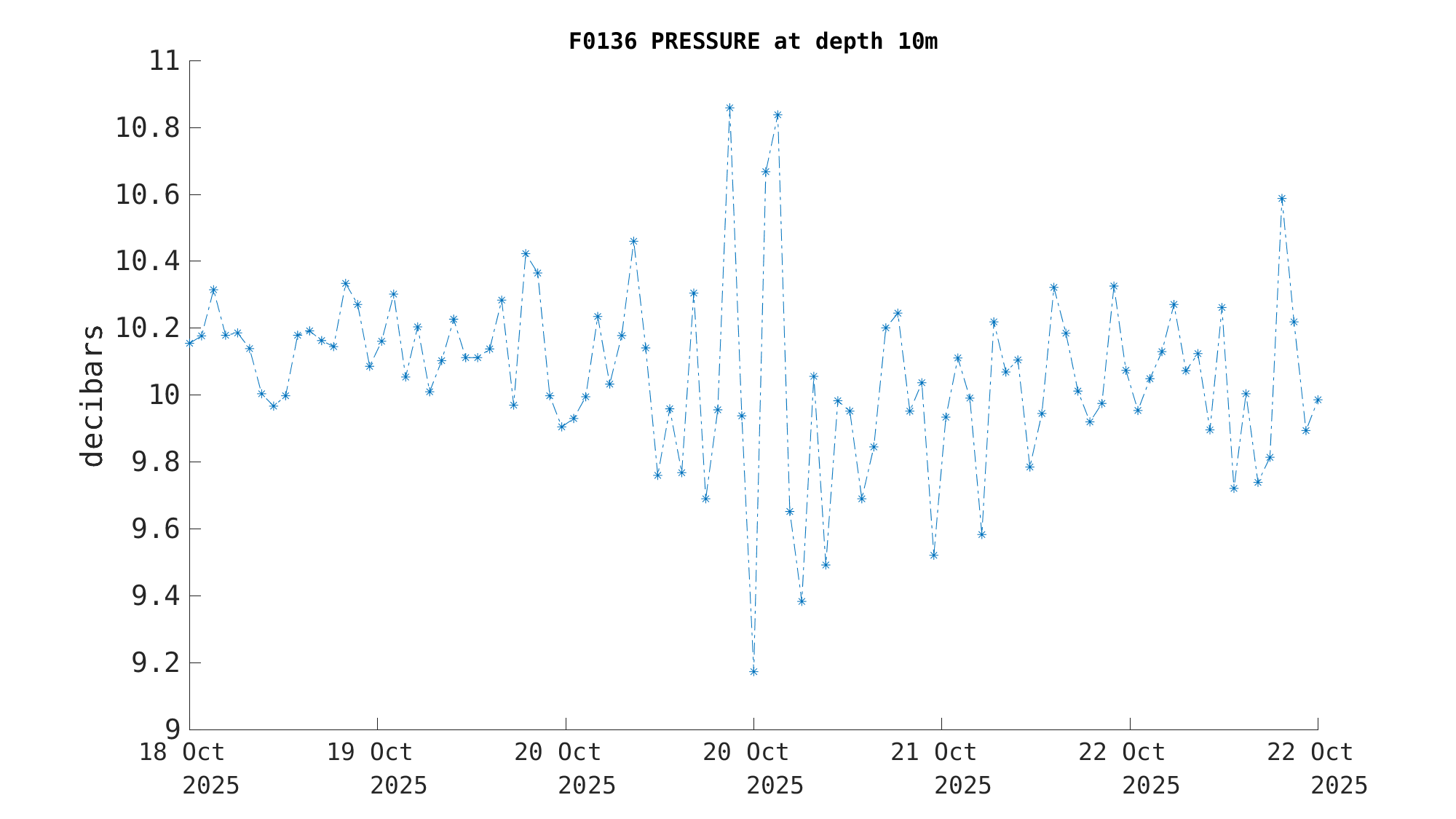 Pressure (10m) | 10.2 decibars | 2025-10-22 14:00:00 |