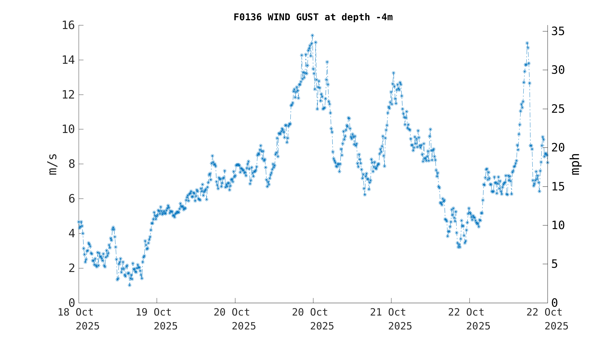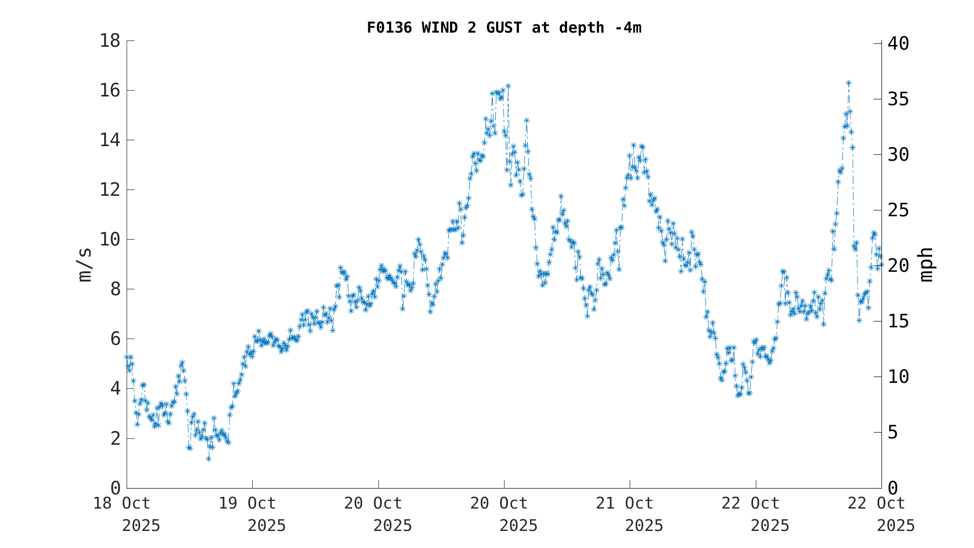 Wind 2 Gust [Primary] (-4m) | 7.5 m/s (17 mph, 15 kts) | 2025-10-22 14:00:00 |