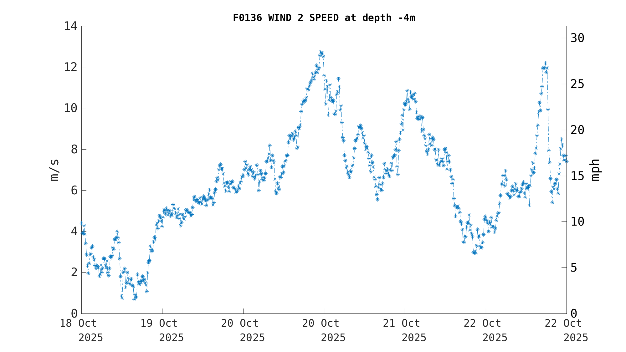 Wind 2 Speed [Primary] (-4m) | 6.1 m/s (14 mph, 12 kts) | 2025-10-22 14:00:00 |
