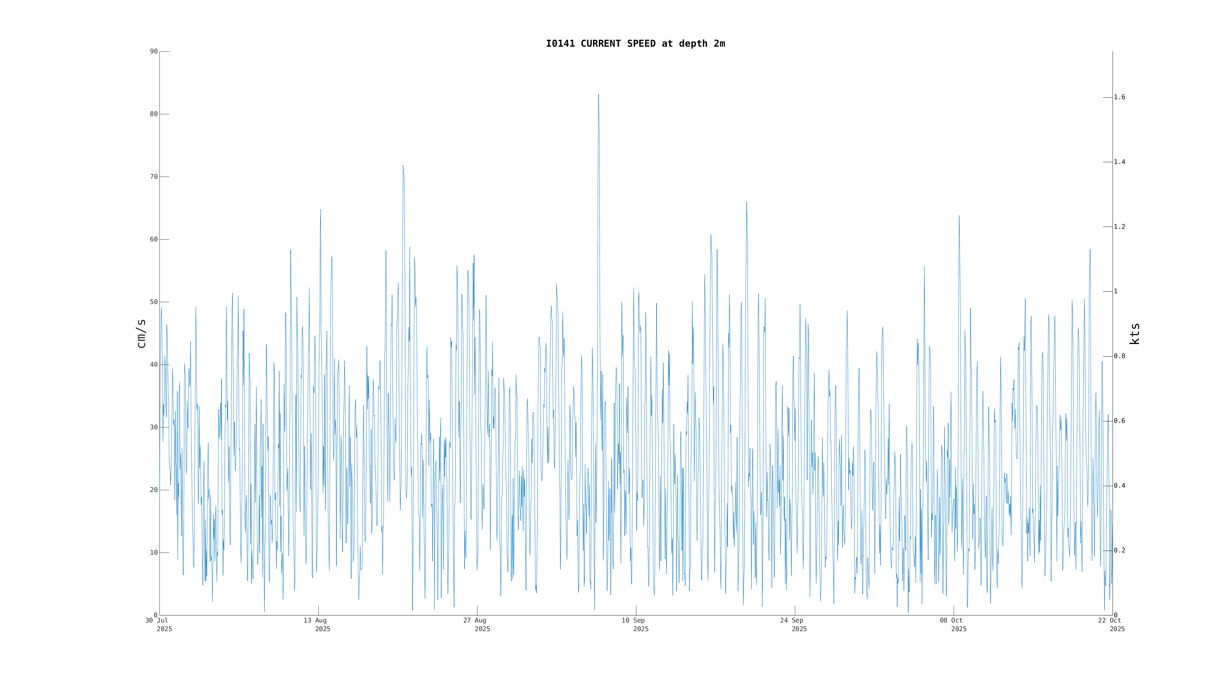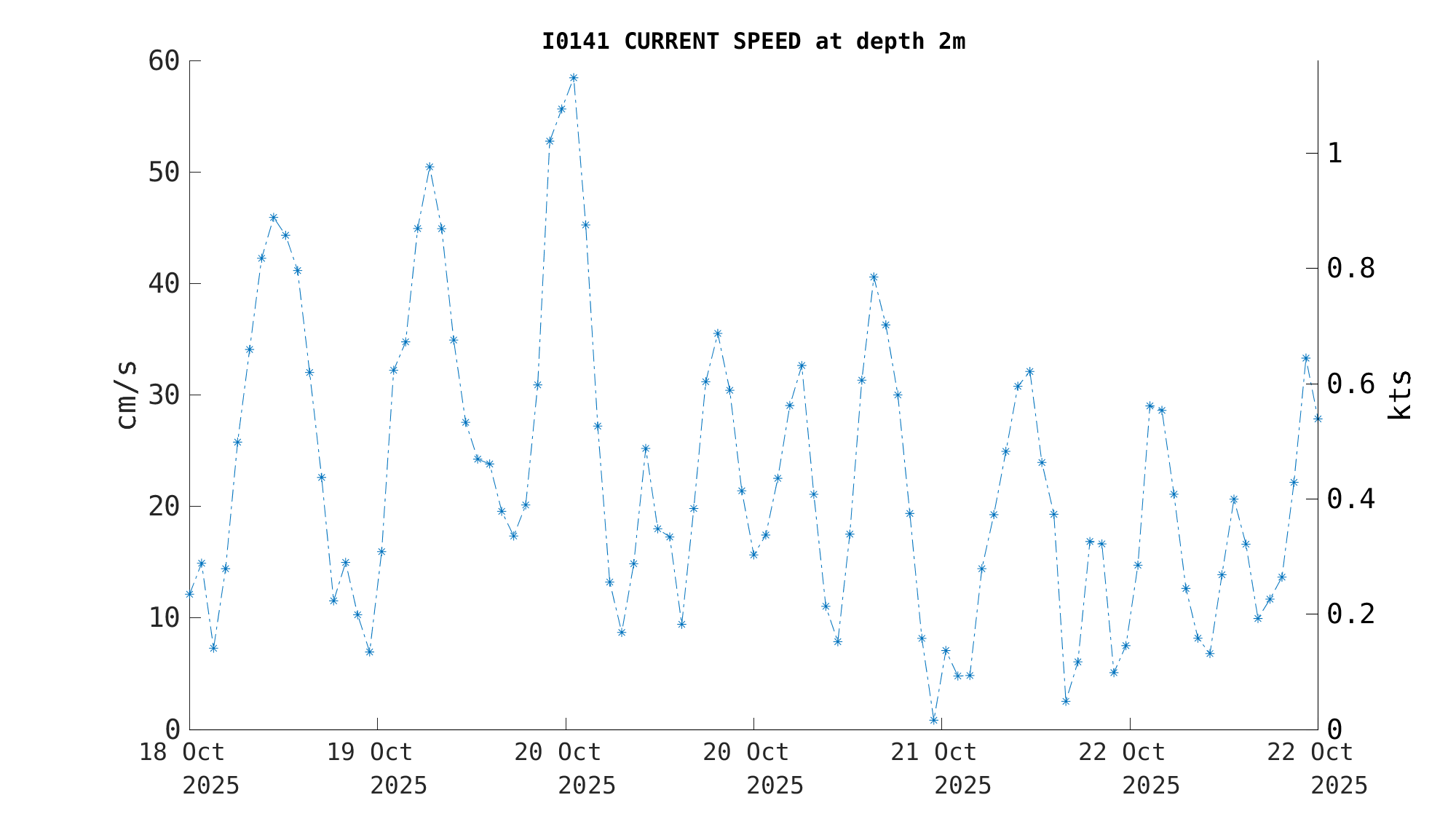 Current Speed (2m) | 22.2 cm/s (0.43 kts) | 2025-10-22 14:00:00 |