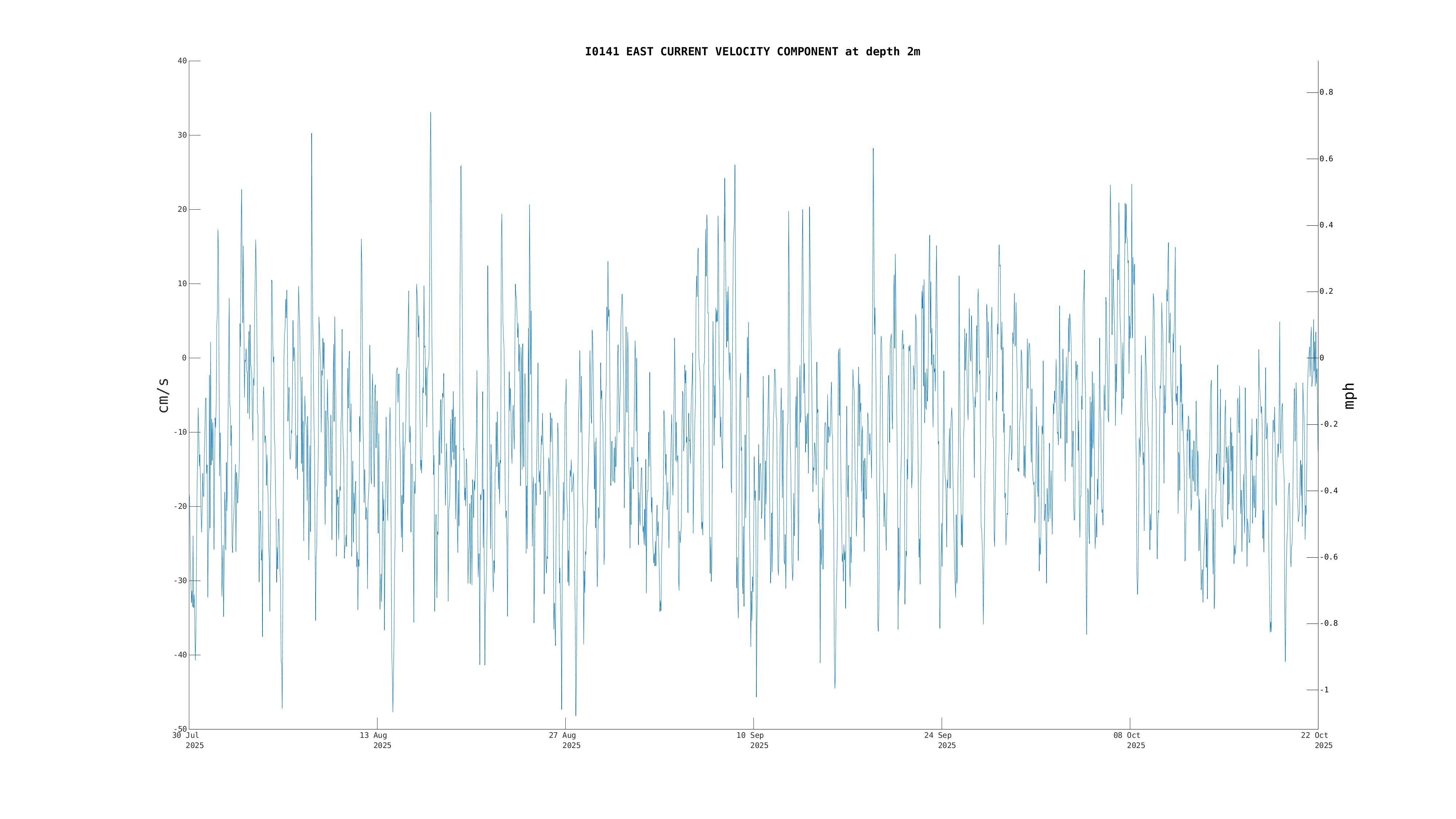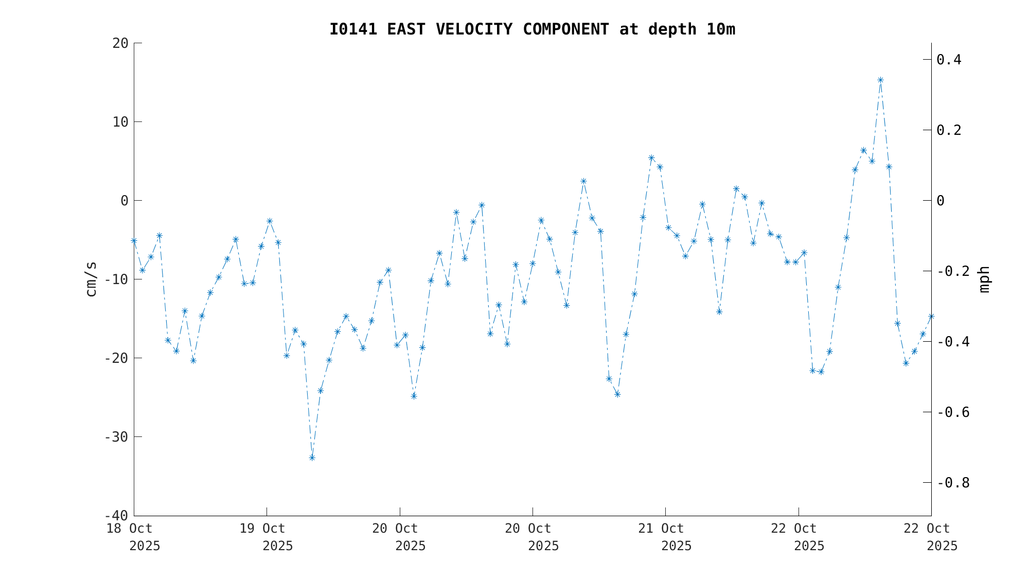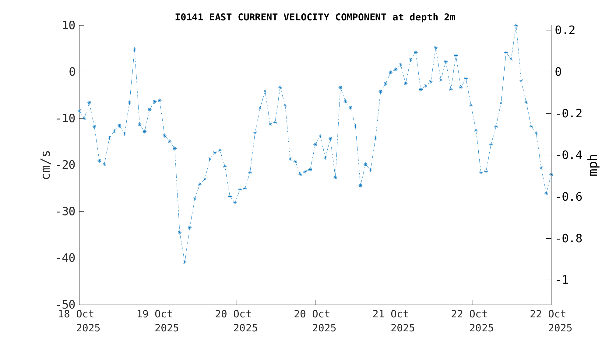 East Current Velocity (10m) | -19.1 cm/s (-0.37 kts) | 2025-10-22 14:00:00 |