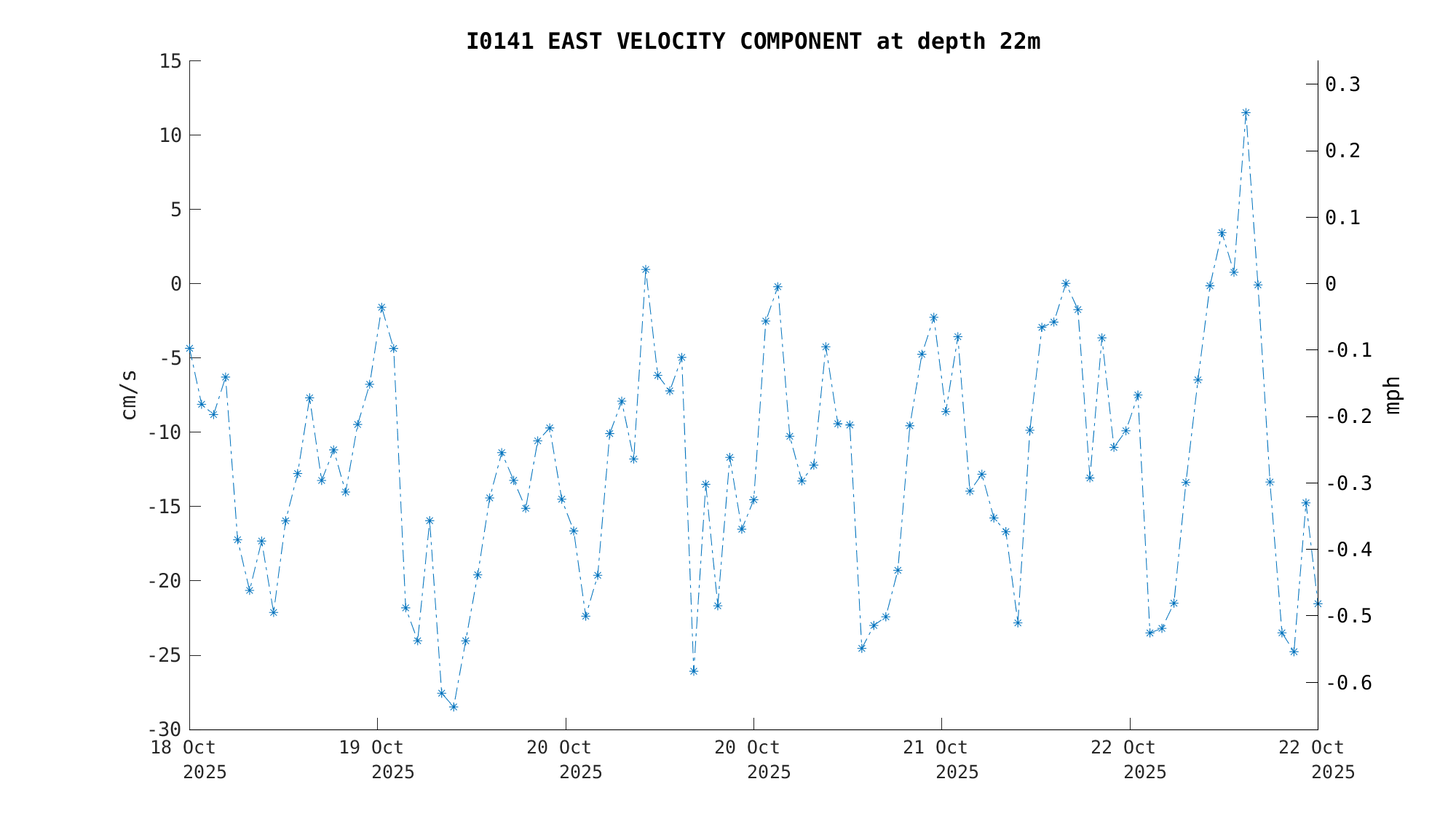 North Current Velocity (22m) | -26.0 cm/s (-0.51 kts) | 2025-10-22 14:00:00 |