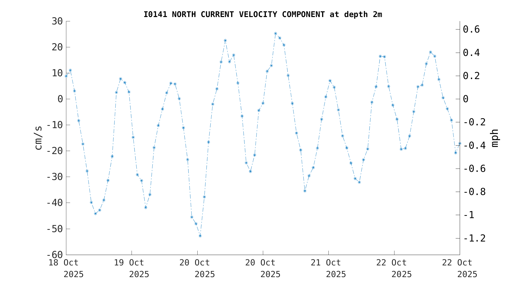 North Current Velocity (2m) | -8.2 cm/s (-0.16 kts) | 2025-10-22 14:00:00 |