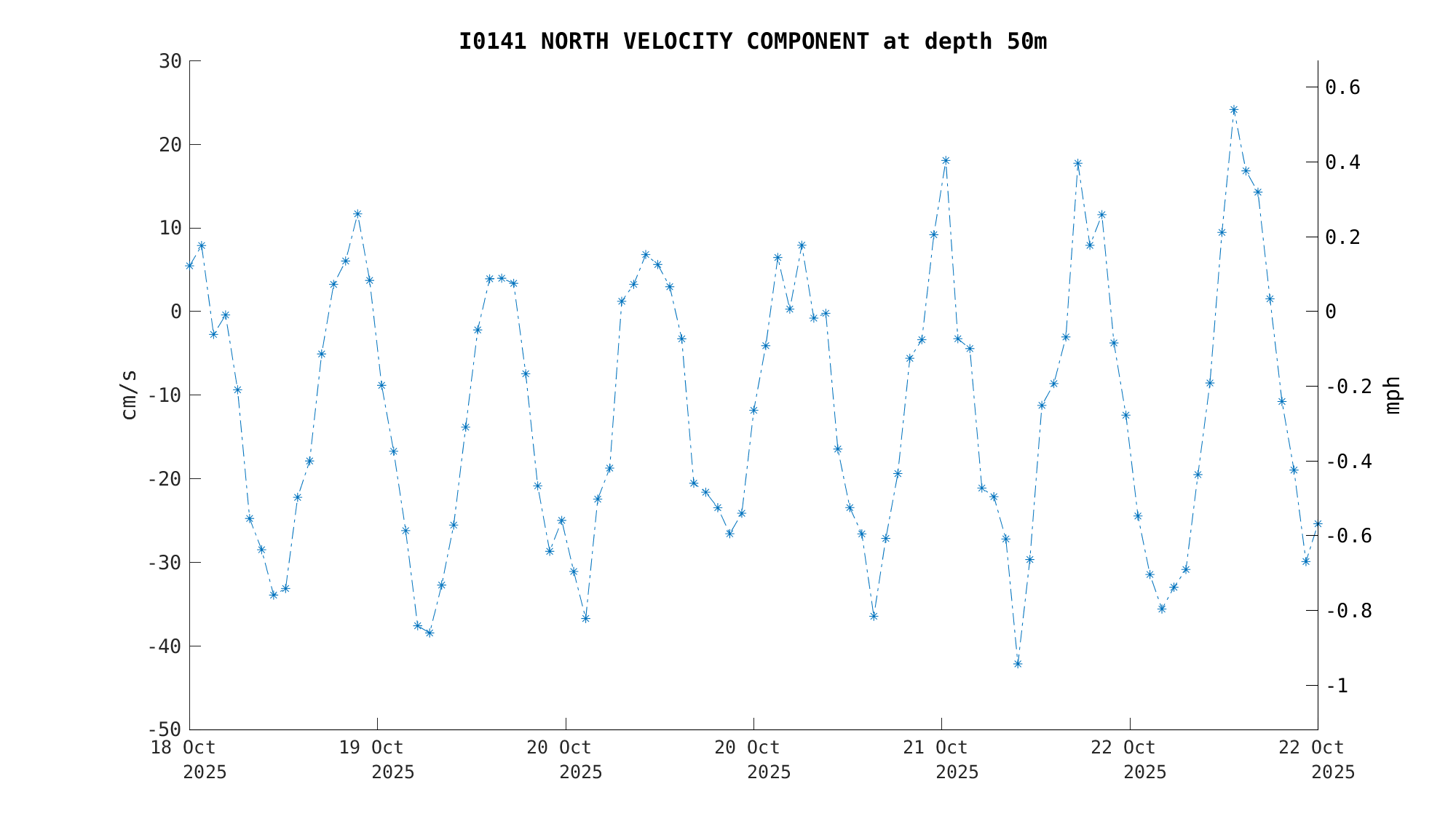 North Current Velocity (50m) | -19.0 cm/s (-0.37 kts) | 2025-10-22 14:00:00 |
