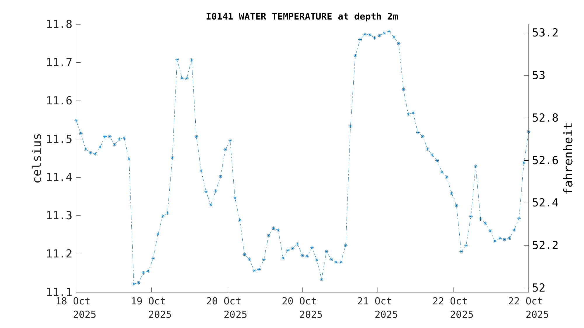 Water Temperature (20m) | 11.3 C (52.3 F) | 2025-10-22 14:00:00 |