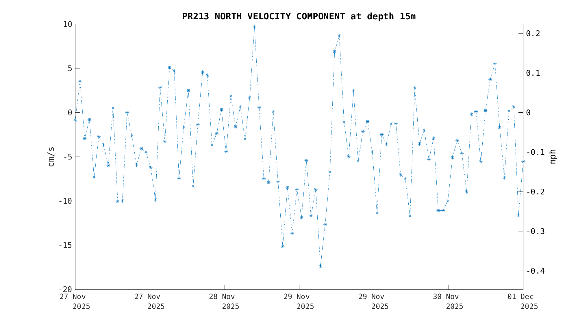 | North Current Velocity (16m) | -12.3 cm/s (-0.24 kts) | 2025-12-15 07:00:00 |