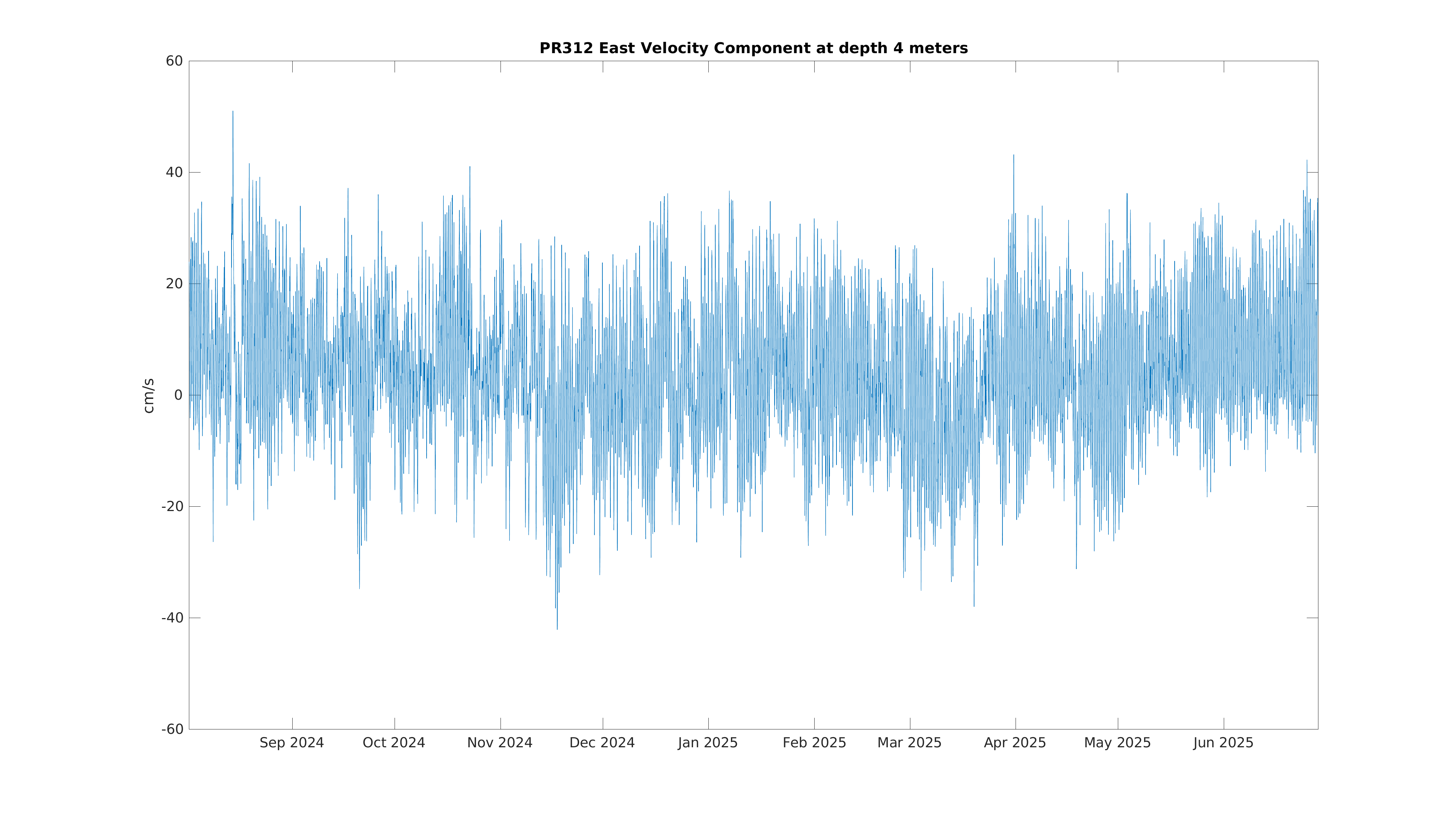 East Current Velocity (16m) | -3.5 cm/s (-0.07 kts) | 2025-06-28 10:00:00 |