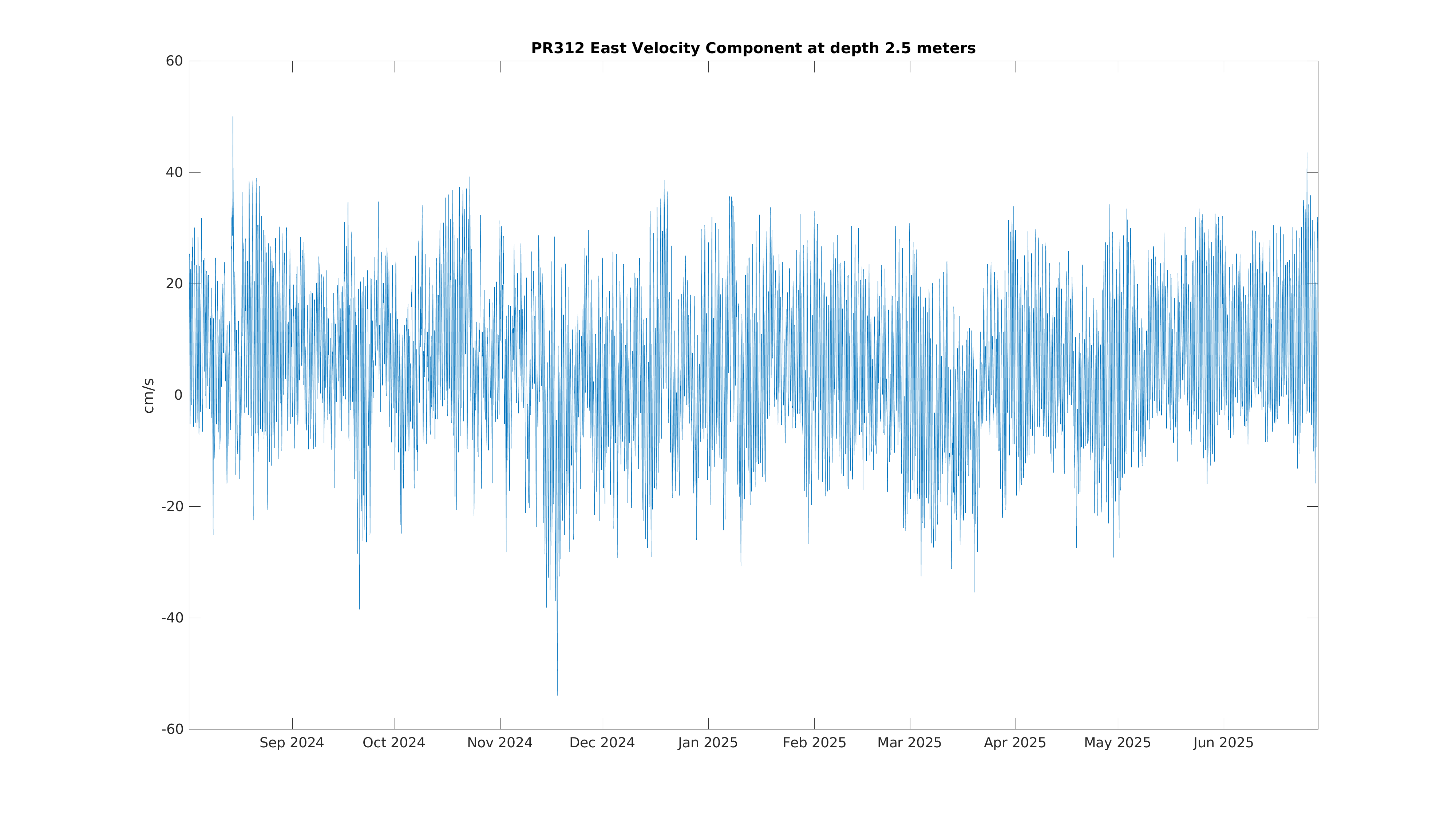 East Current Velocity (13m) | -2.6 cm/s (-0.05 kts) | 2025-06-28 10:00:00 |