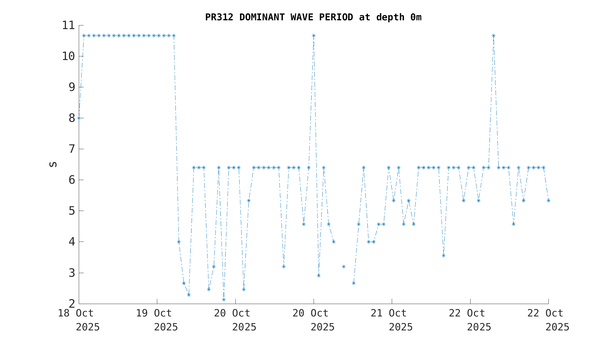 Dominant Wave Period (alt) (0m) | 6.4 seconds | 2025-10-22 13:00:00 |
