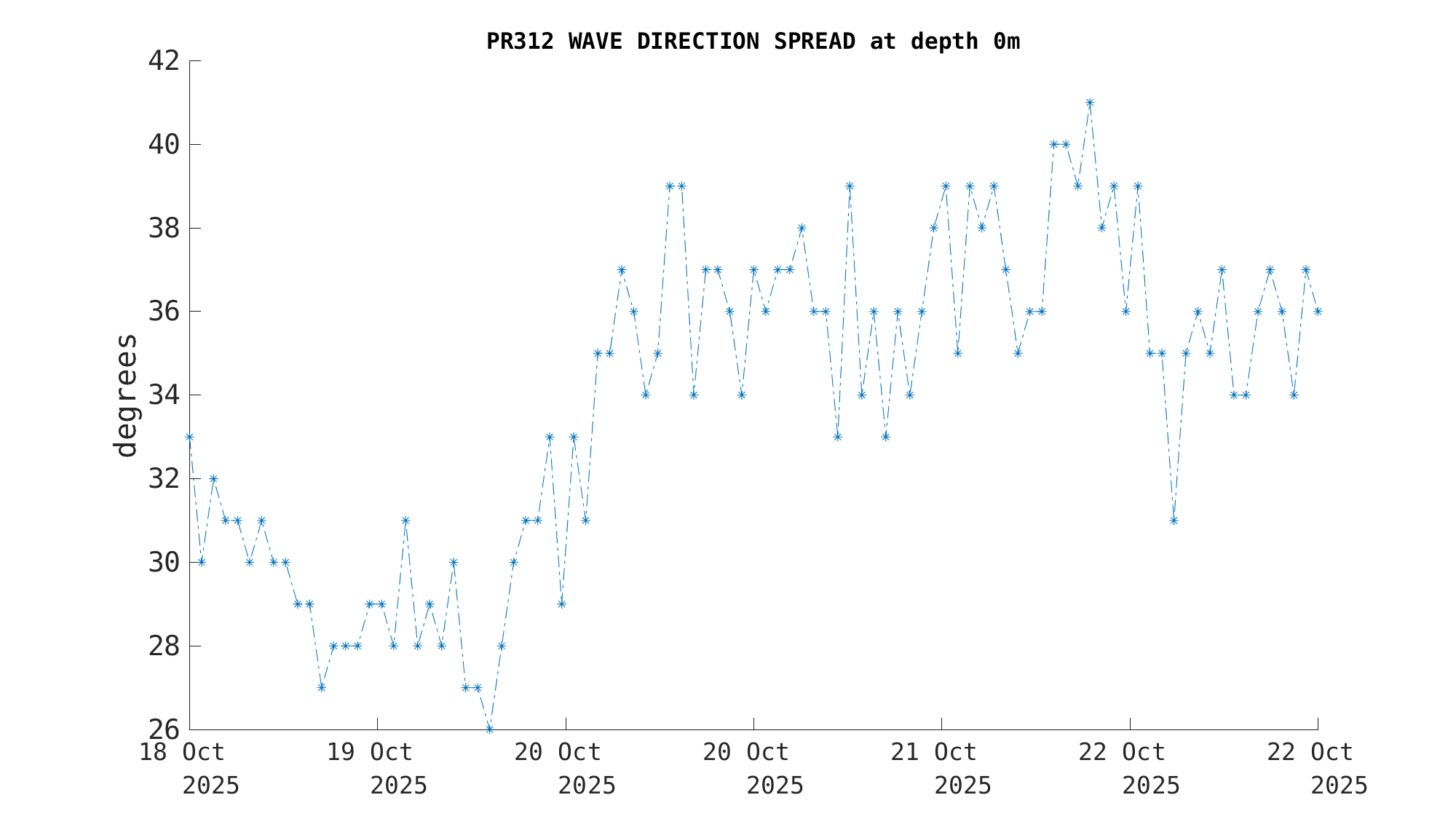 Mean Wave Direction Spread (0m) | 34.0 degrees | 2025-10-22 13:00:00 |