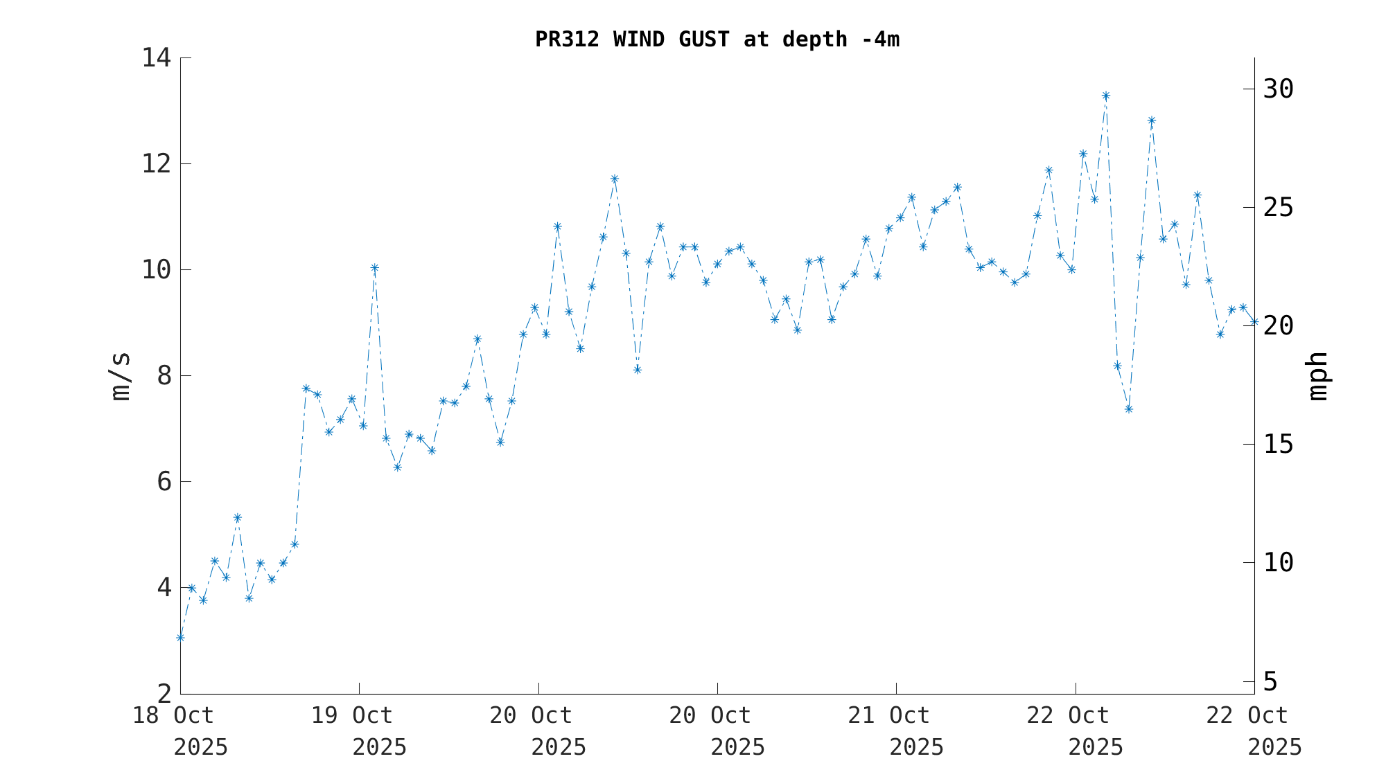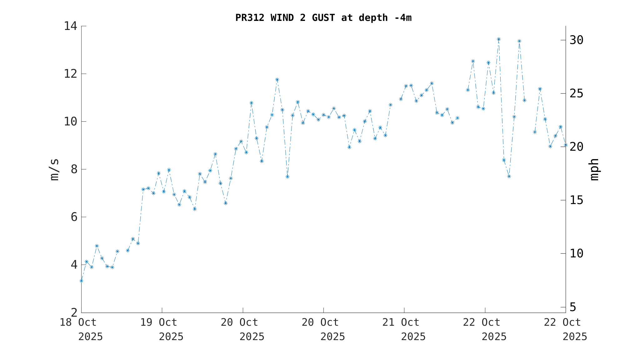 Wind 2 Gust [Primary] (-4m) | 9.0 m/s (20 mph, 17 kts) | 2025-10-22 13:00:00 |
