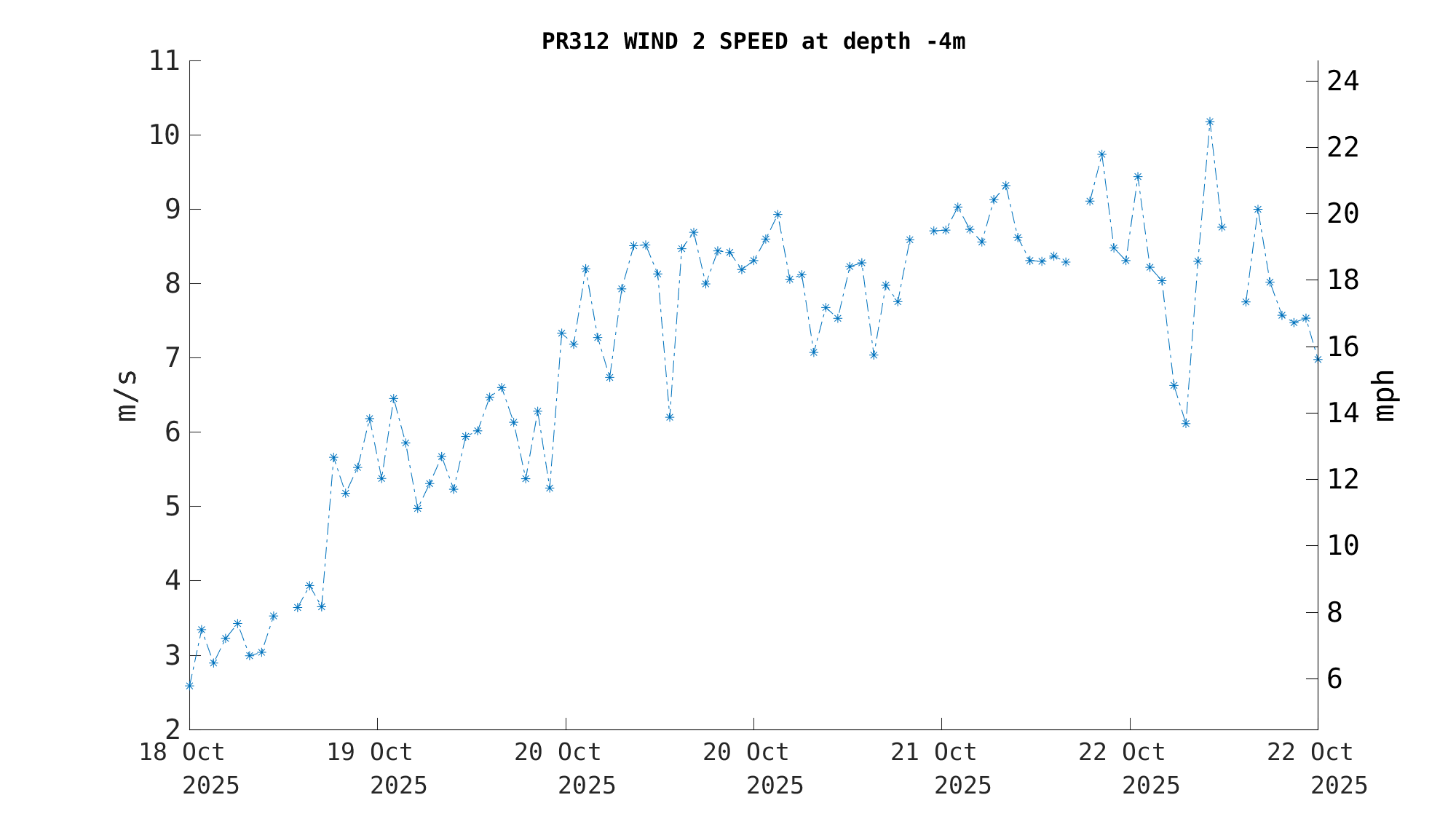 Wind 2 Speed [Primary] (-4m) | 7.6 m/s (17 mph, 15 kts) | 2025-10-22 13:00:00 |