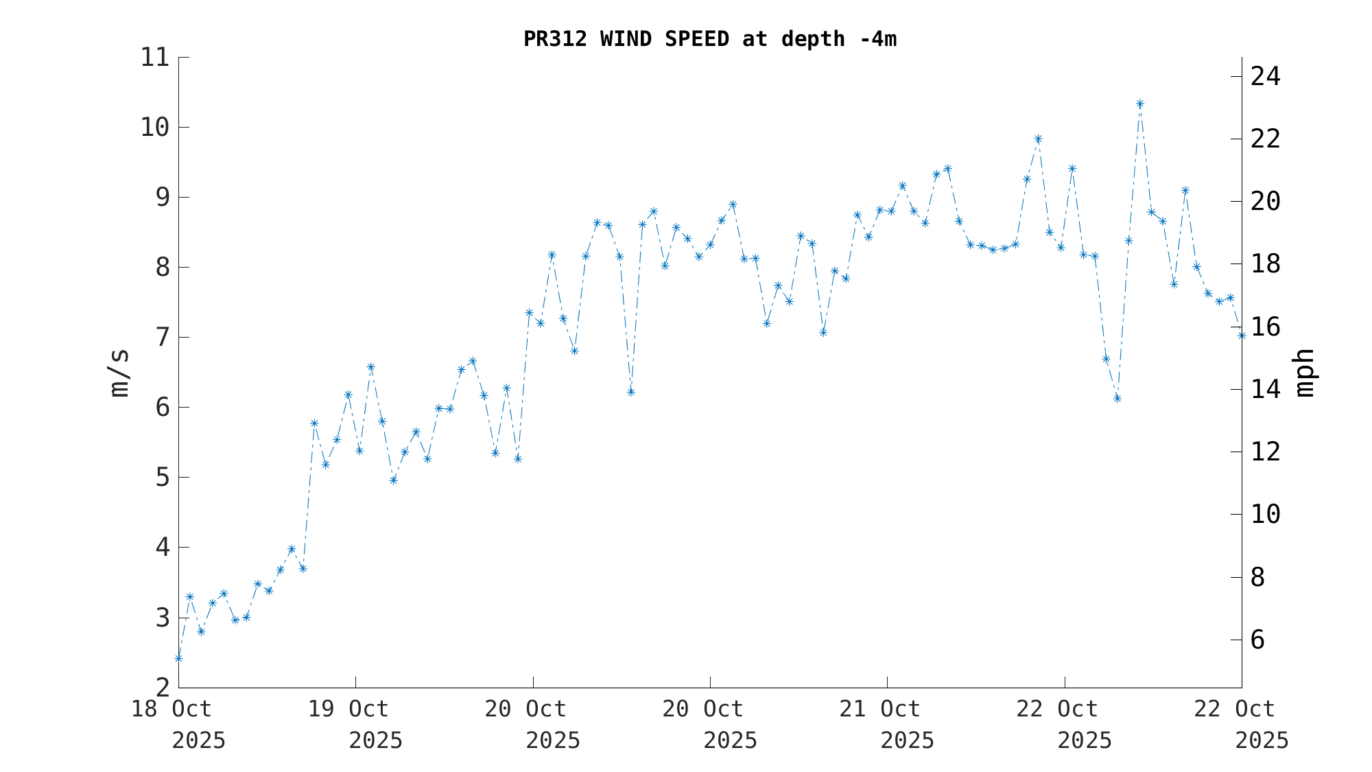 Wind Speed (-4m) | 7.6 m/s (17 mph, 15 kts) | 2025-10-22 13:00:00 |