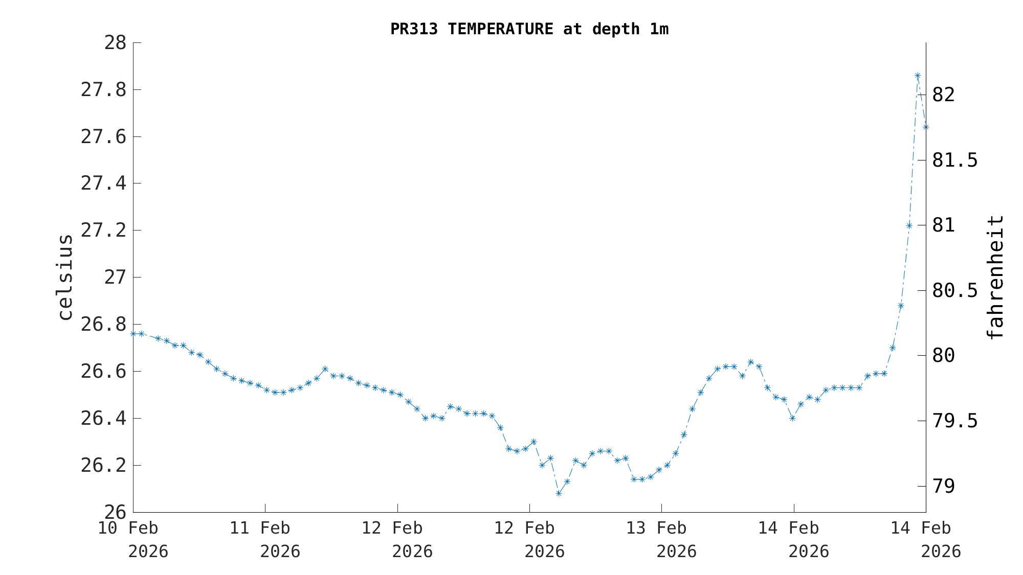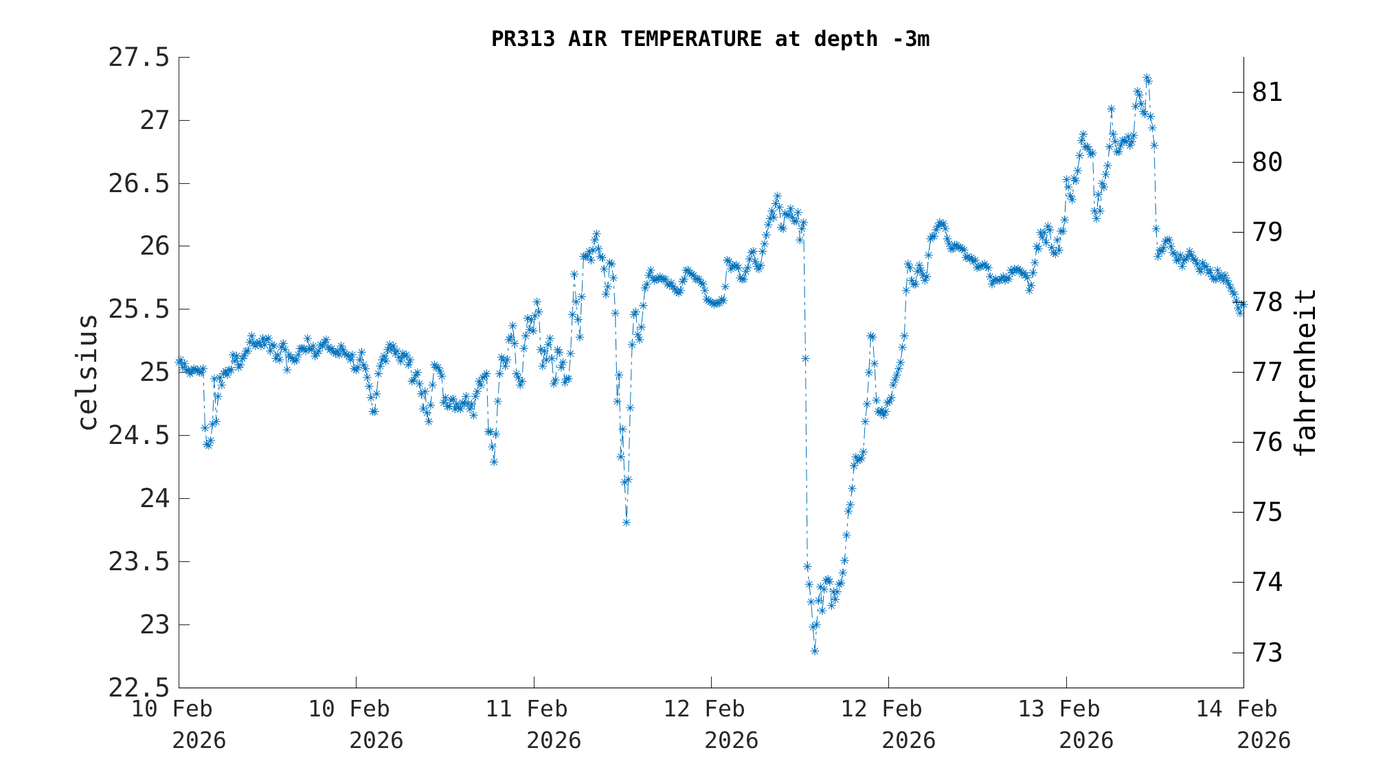 | Air Temperature (-3m) | 26.4 C (79.6 F) | 2026-02-14 16:30:00 |