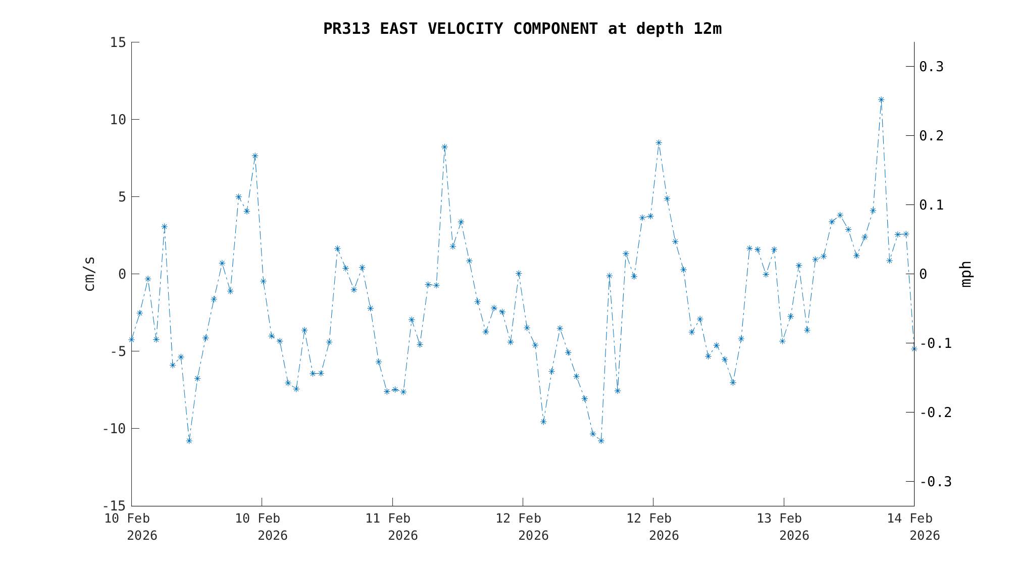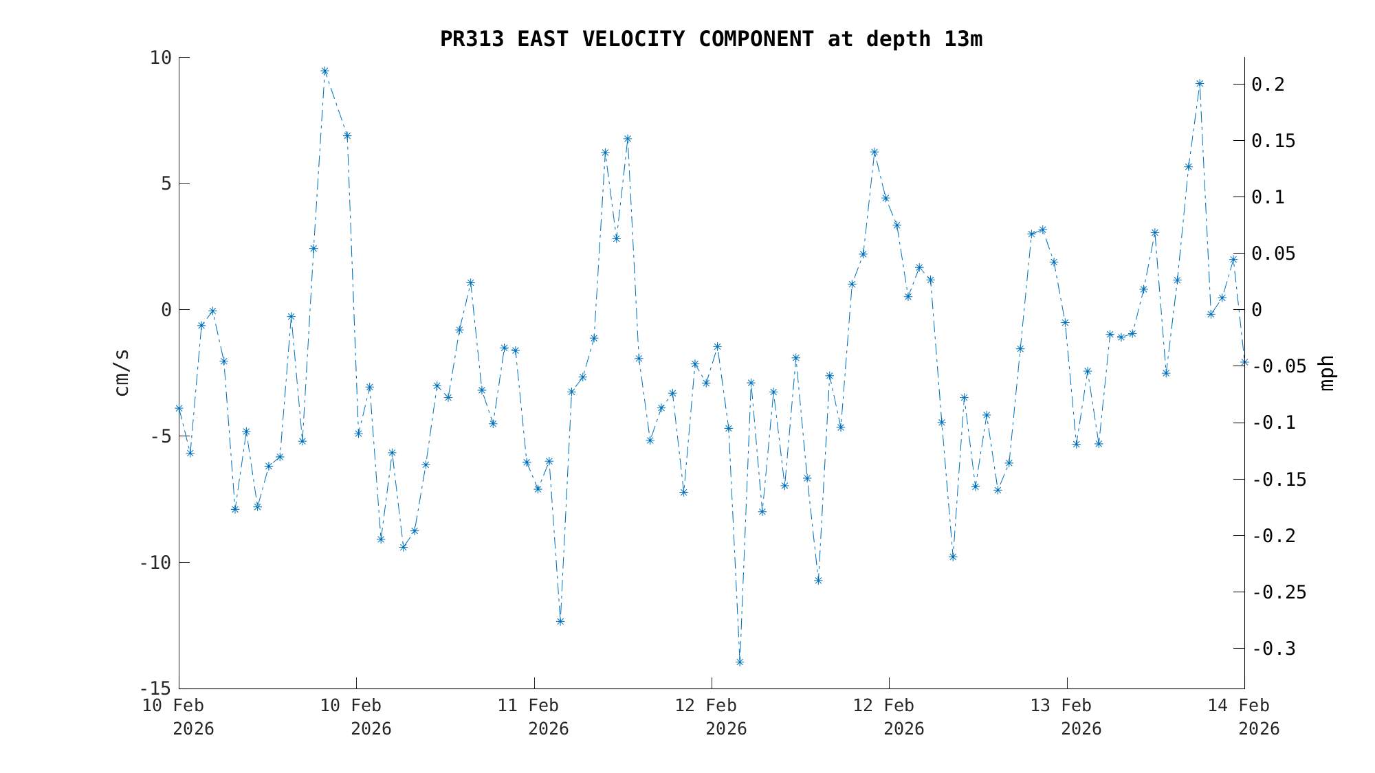 | East Current Velocity (13m) | -2.2 cm/s (-0.04 kts) | 2026-02-14 16:00:00 |