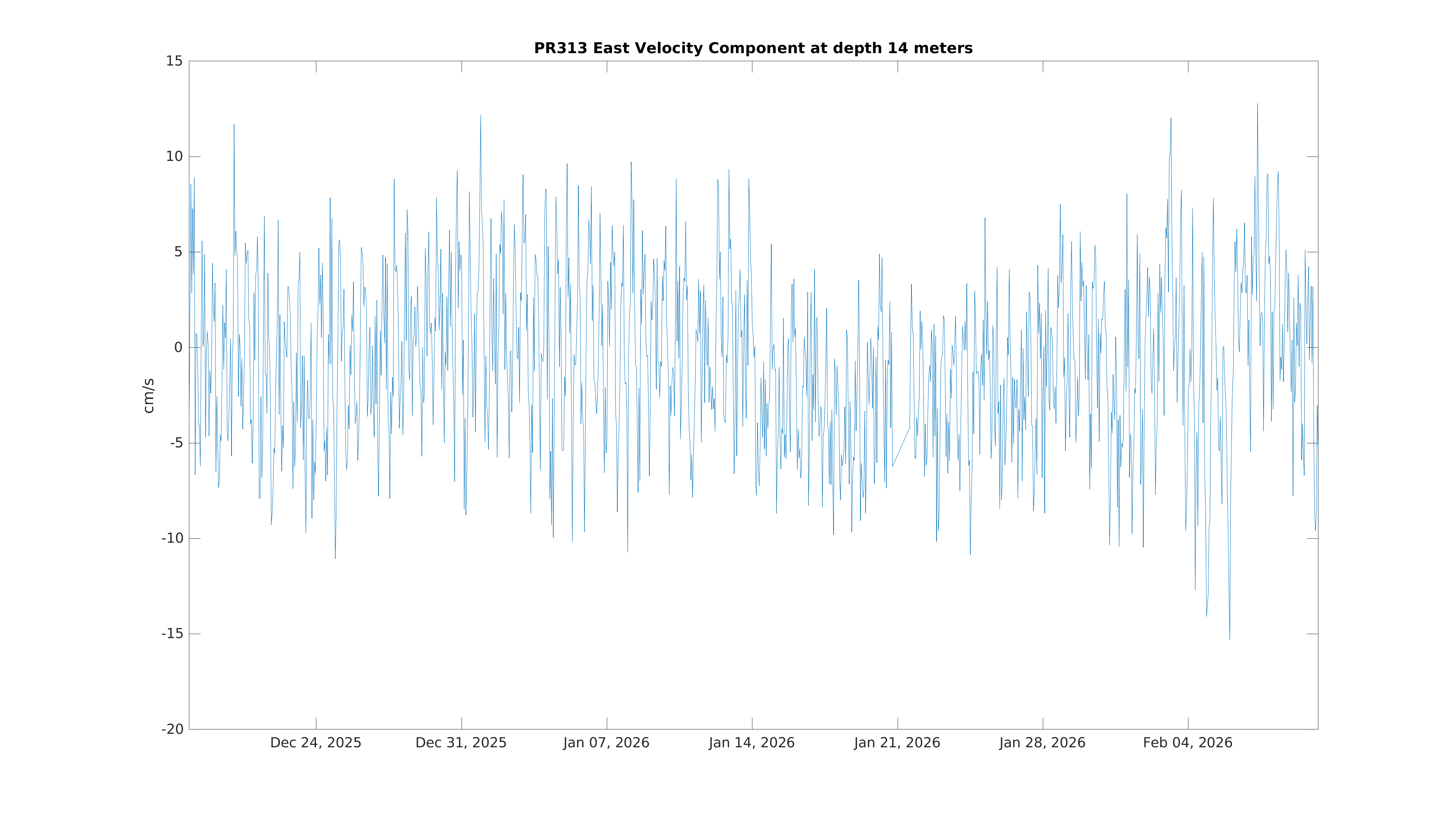 | North Current Velocity (14m) | -1.6 cm/s (-0.03 kts) | 2026-02-14 16:00:00 |