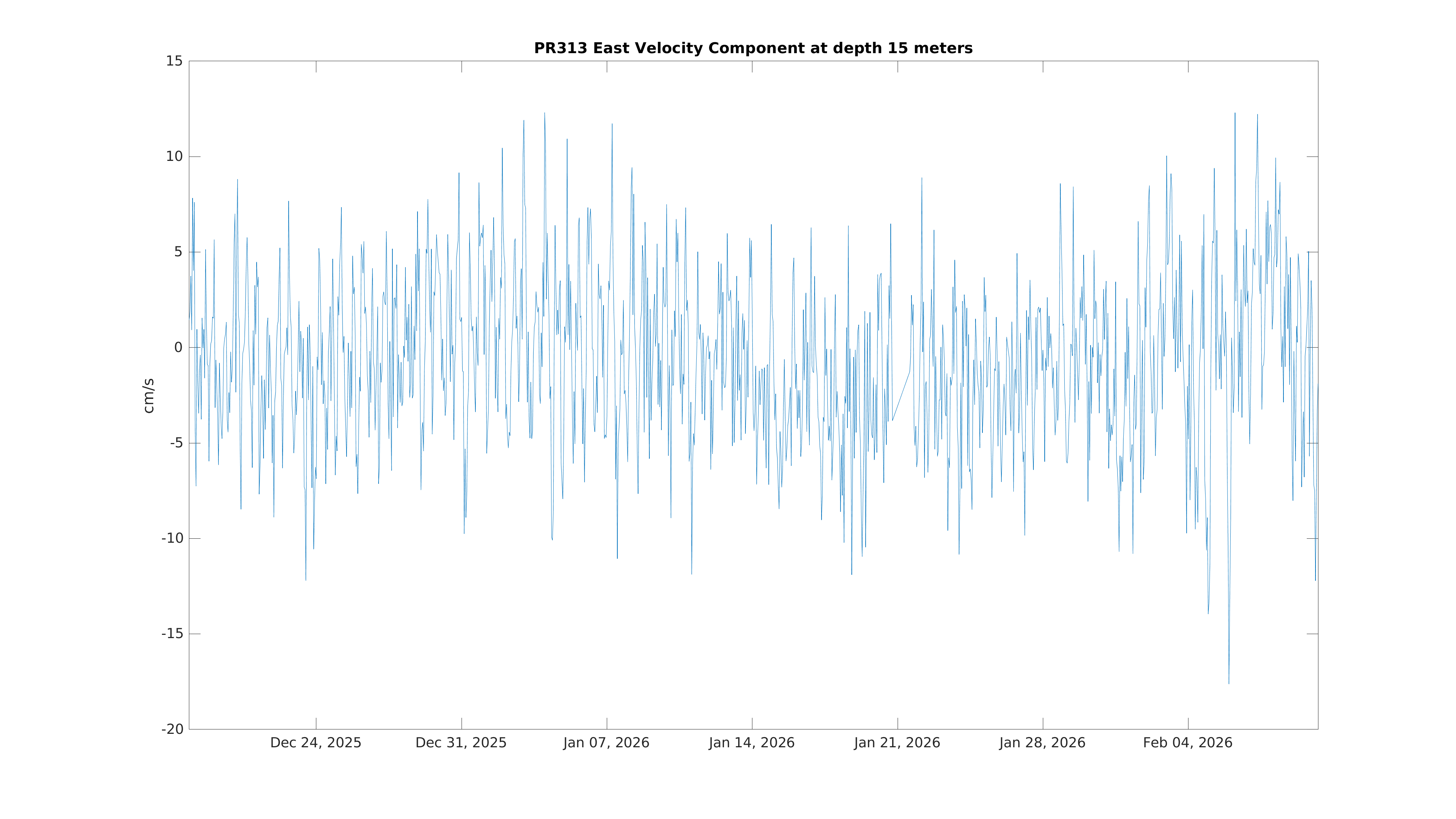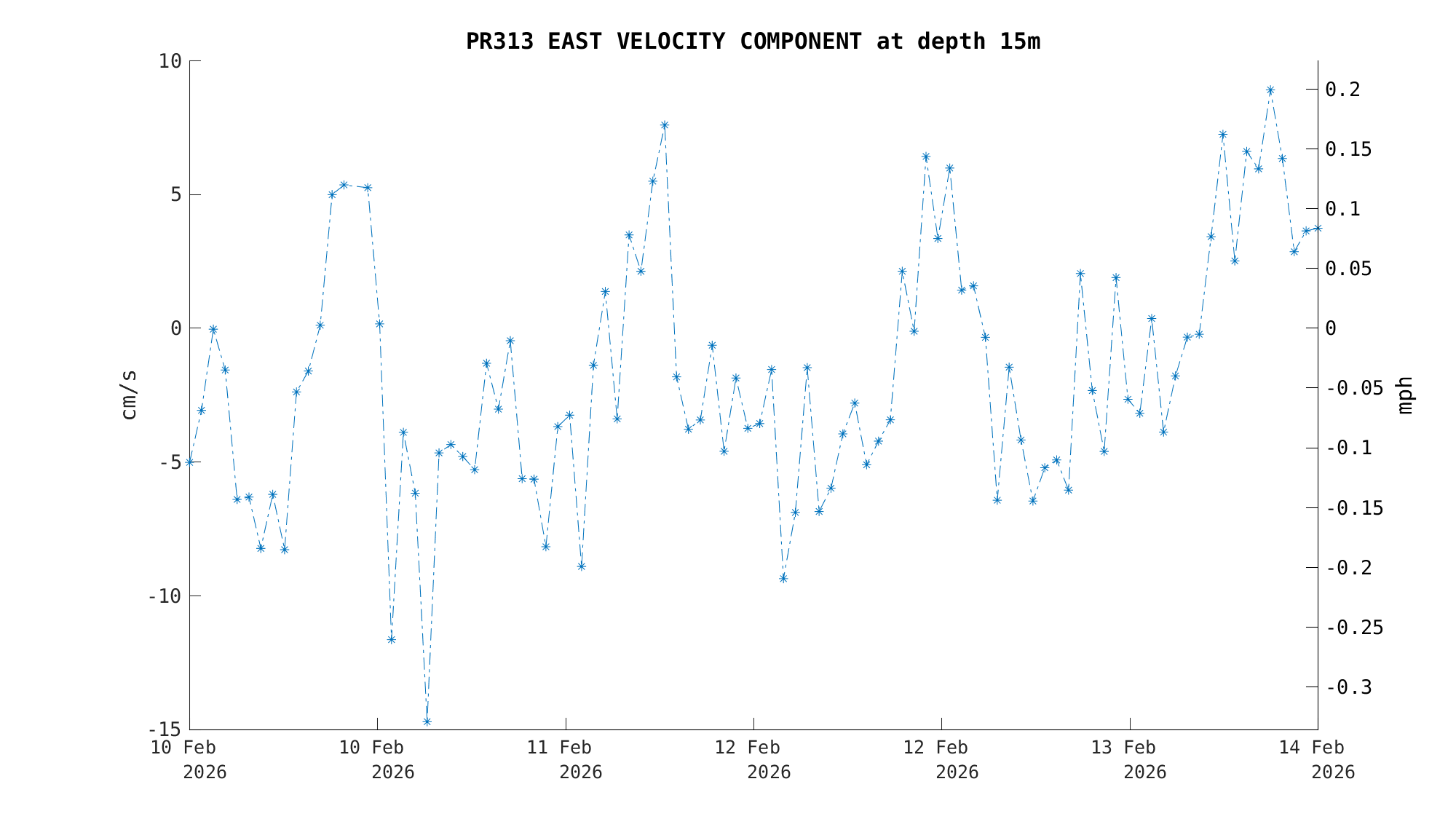 | East Current Velocity (15m) | 1.3 cm/s (0.02 kts) | 2026-02-14 16:00:00 |