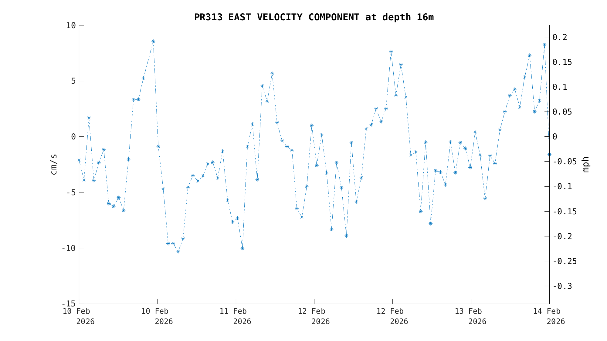 | East Current Velocity (16m) | 0.8 cm/s (0.02 kts) | 2026-02-14 16:00:00 |