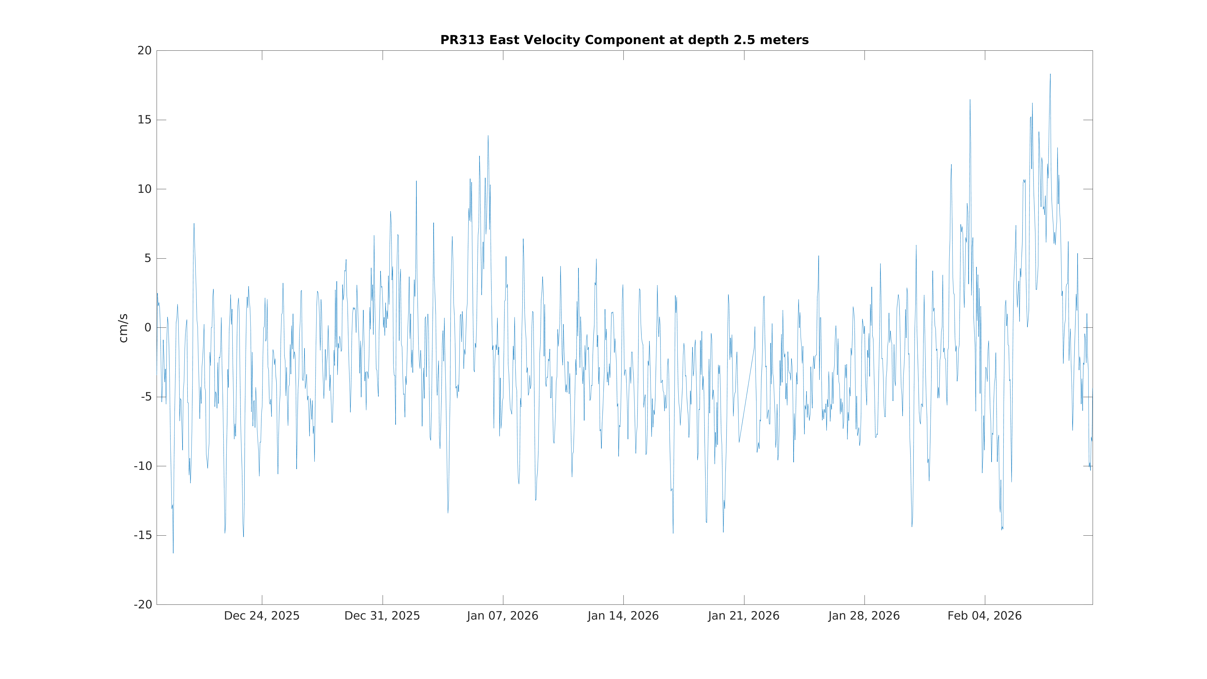 | East Current Velocity (2.5m) | -0.9 cm/s (-0.02 kts) | 2026-02-14 16:00:00 |