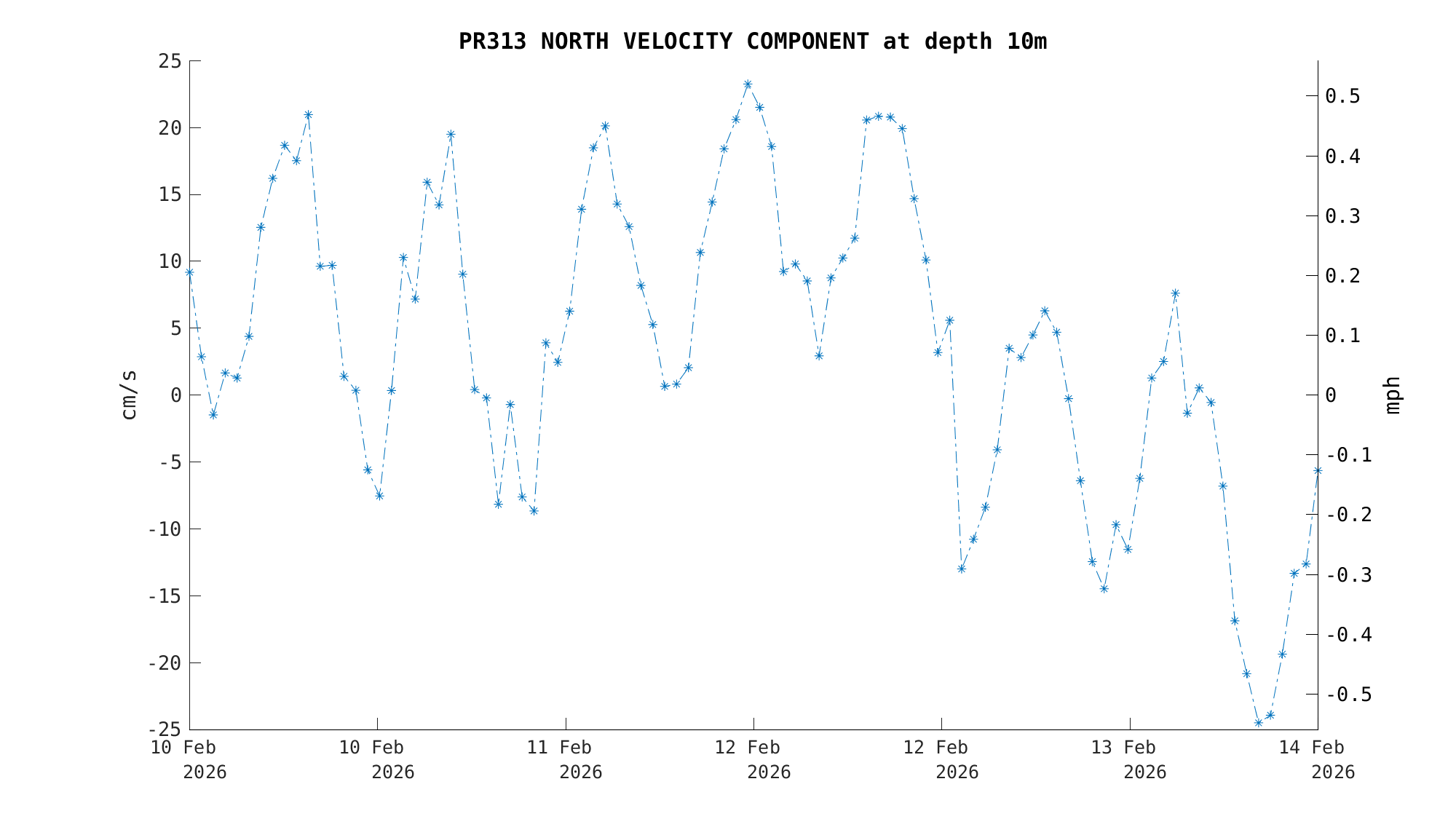 | North Current Velocity (10m) | -0.9 cm/s (-0.02 kts) | 2026-02-14 16:00:00 |