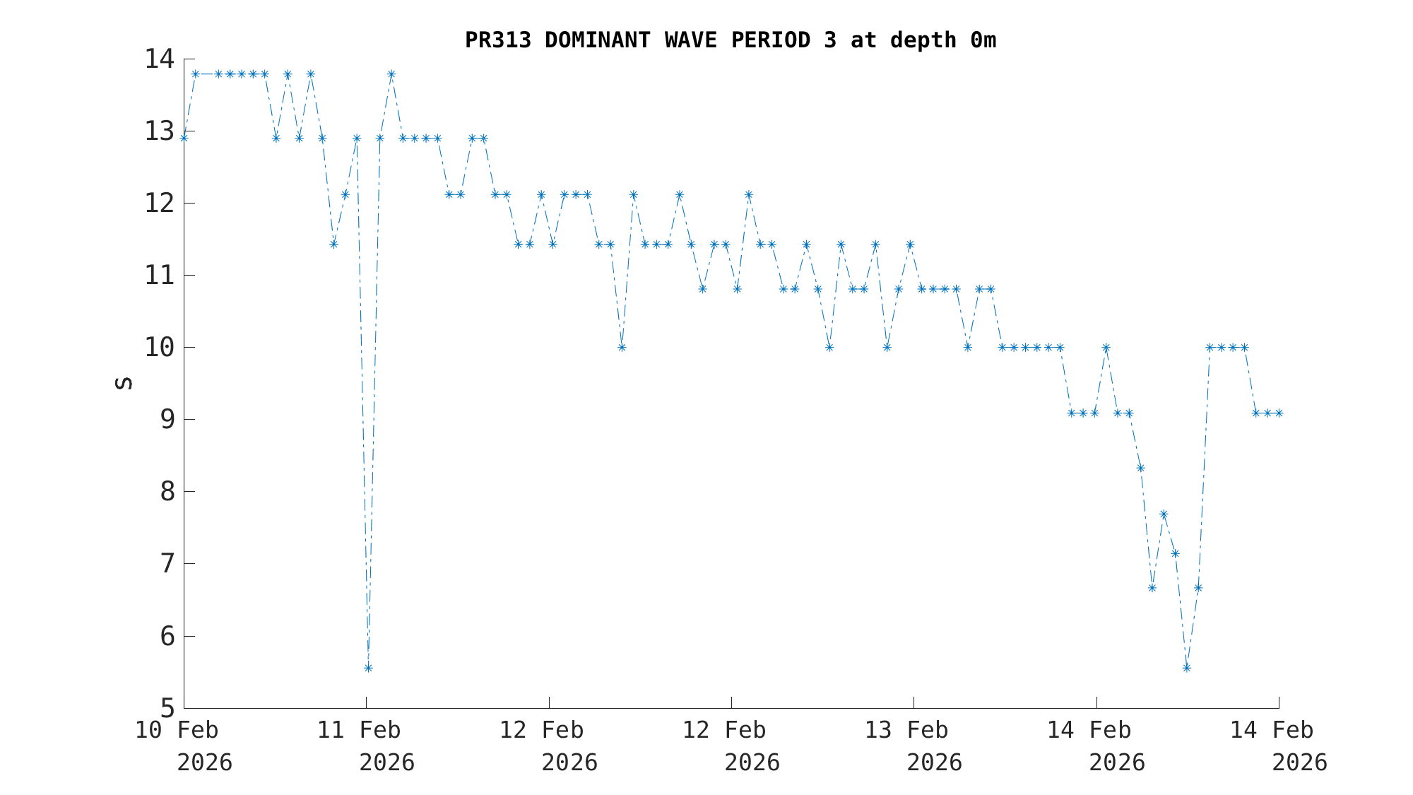 | Dominant Wave Period (test) (0m) | 9.1 seconds | 2026-02-14 16:00:00 |