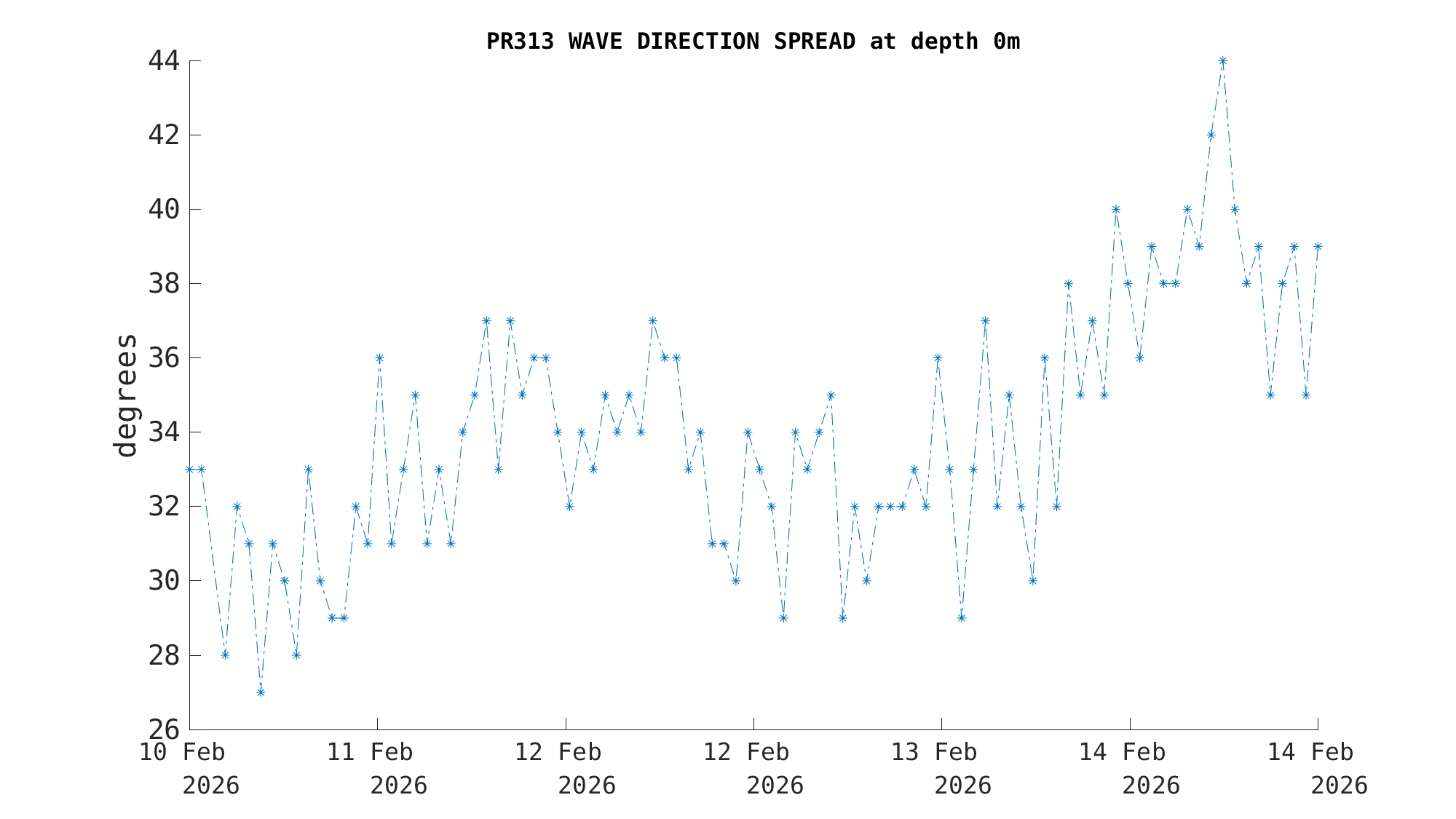 | Mean Wave Direction Spread (0m) | 36.0 degrees | 2026-02-14 16:00:00 |