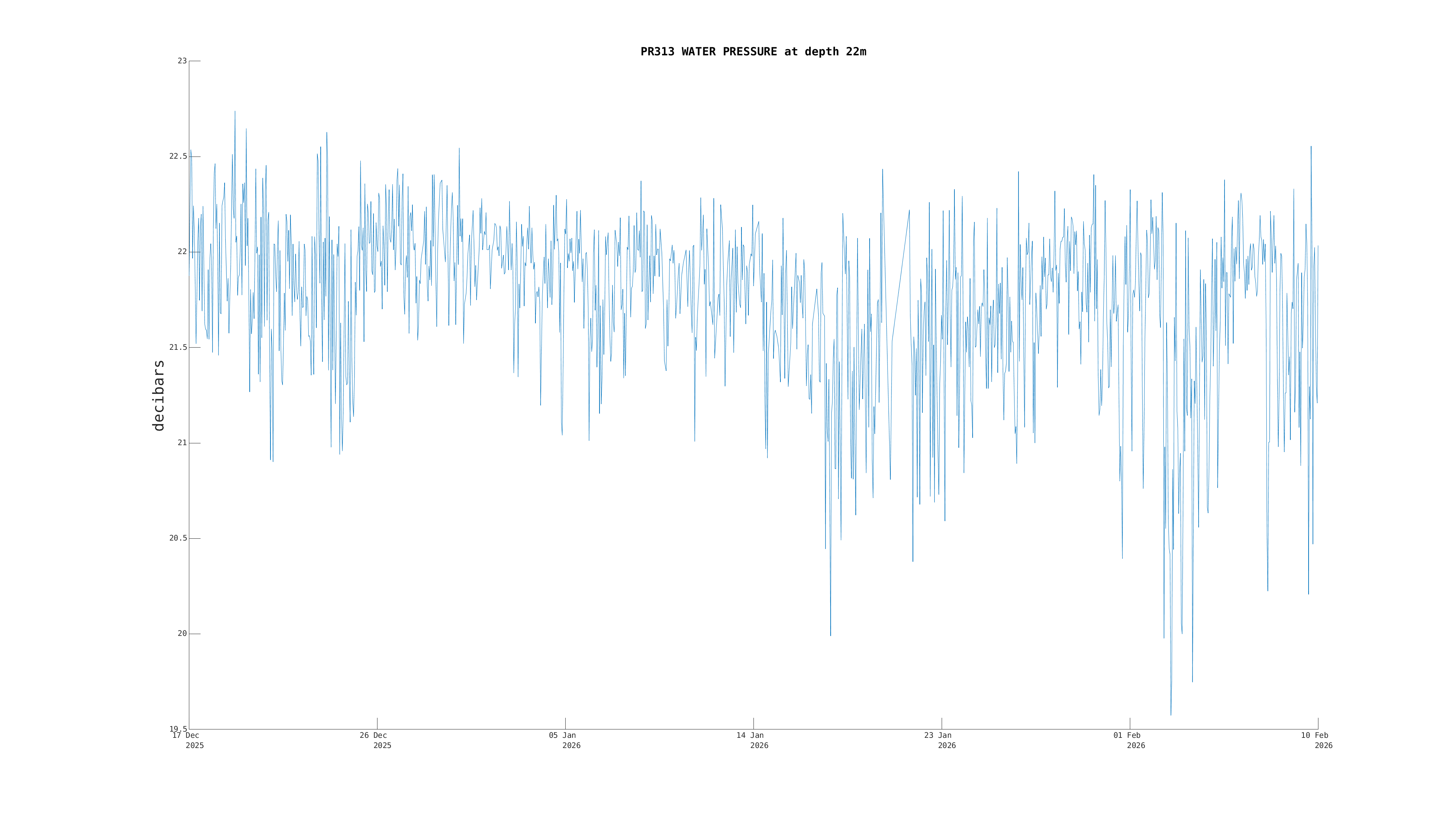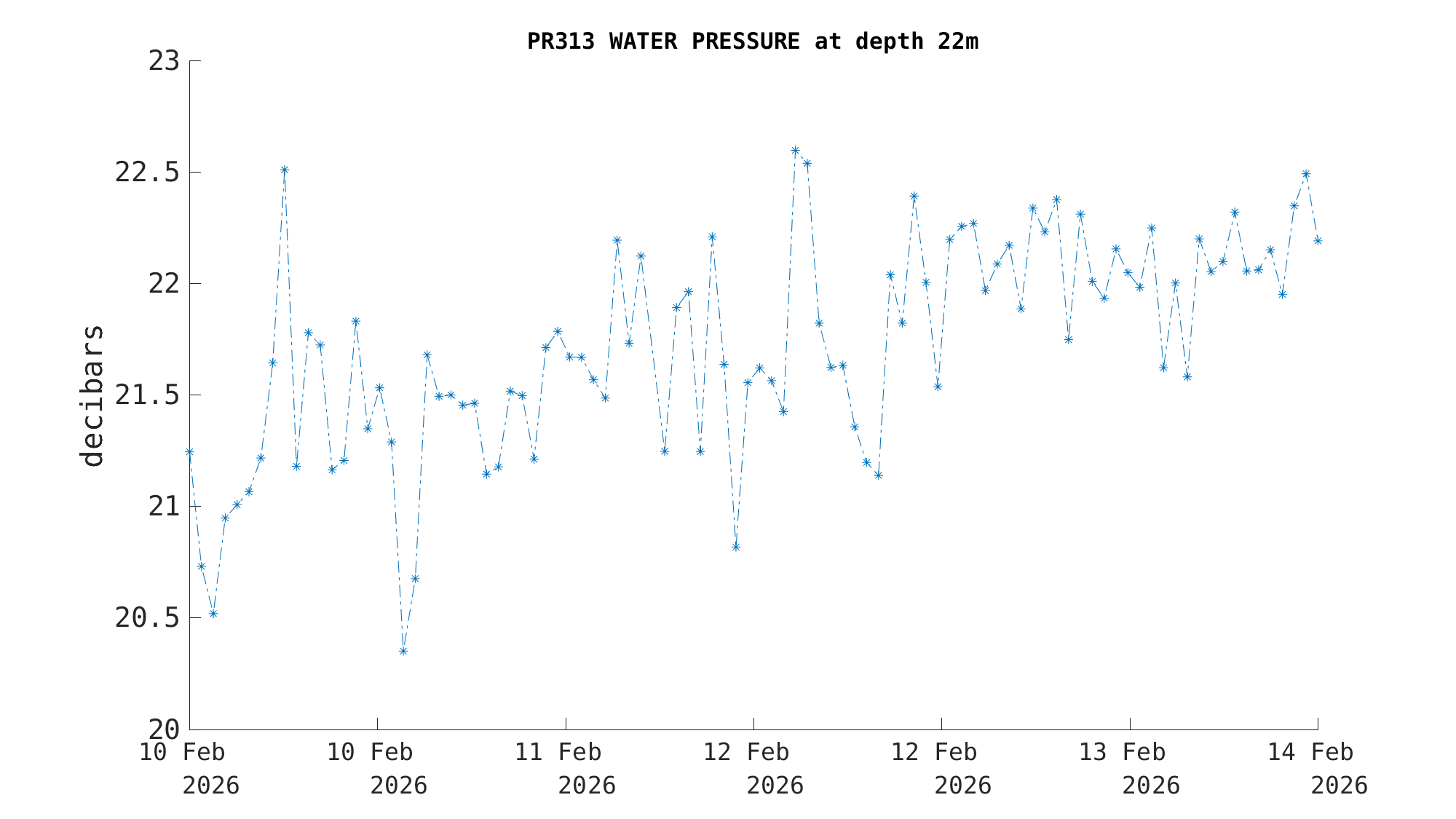 | Pressure (22m) | 22.3 decibars | 2026-02-14 16:00:00 |