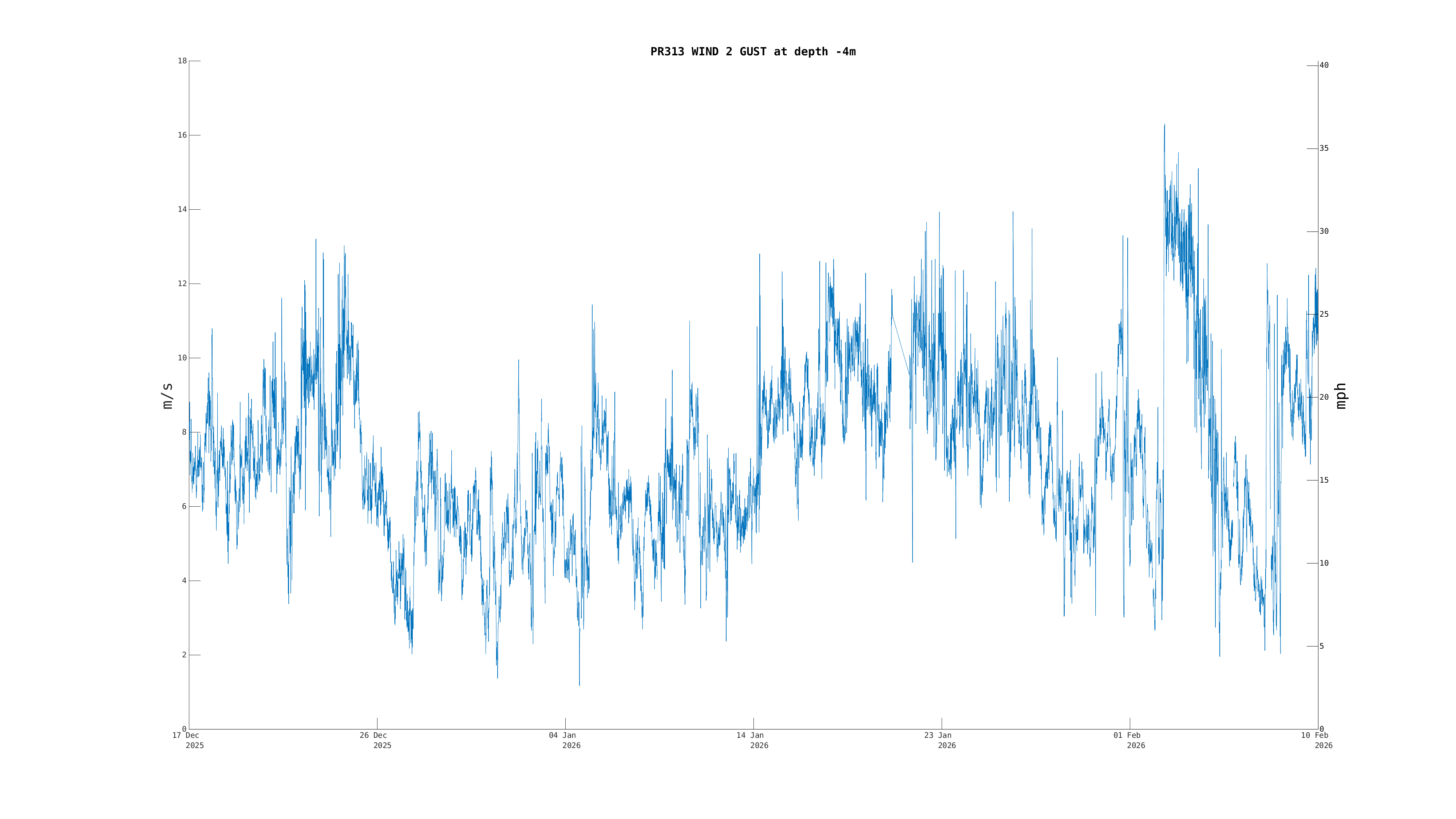 | Wind 2 Gust [Primary] (-4m) | 4.6 m/s (10 mph, 9 kts) | 2026-02-14 16:30:00 |