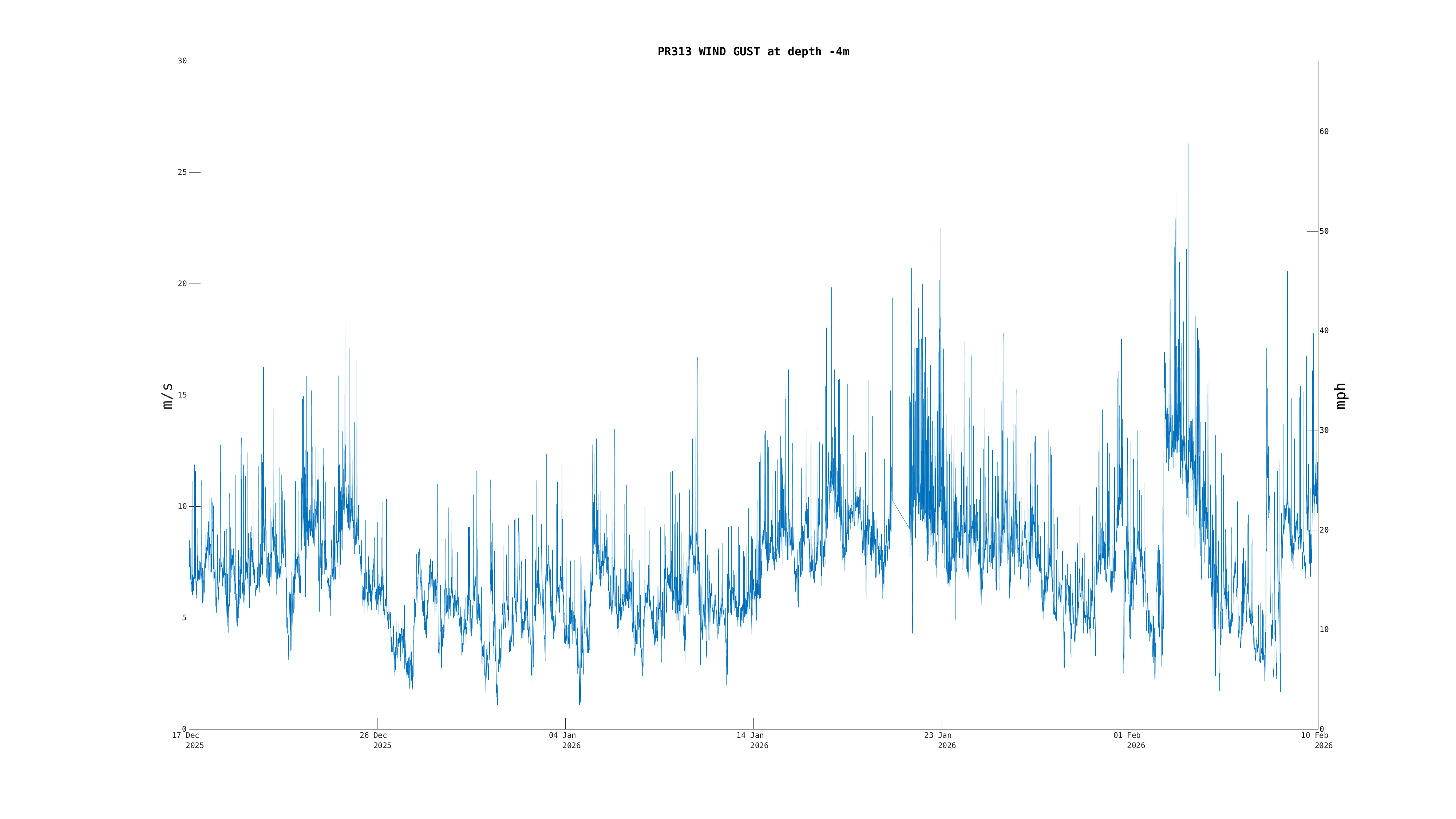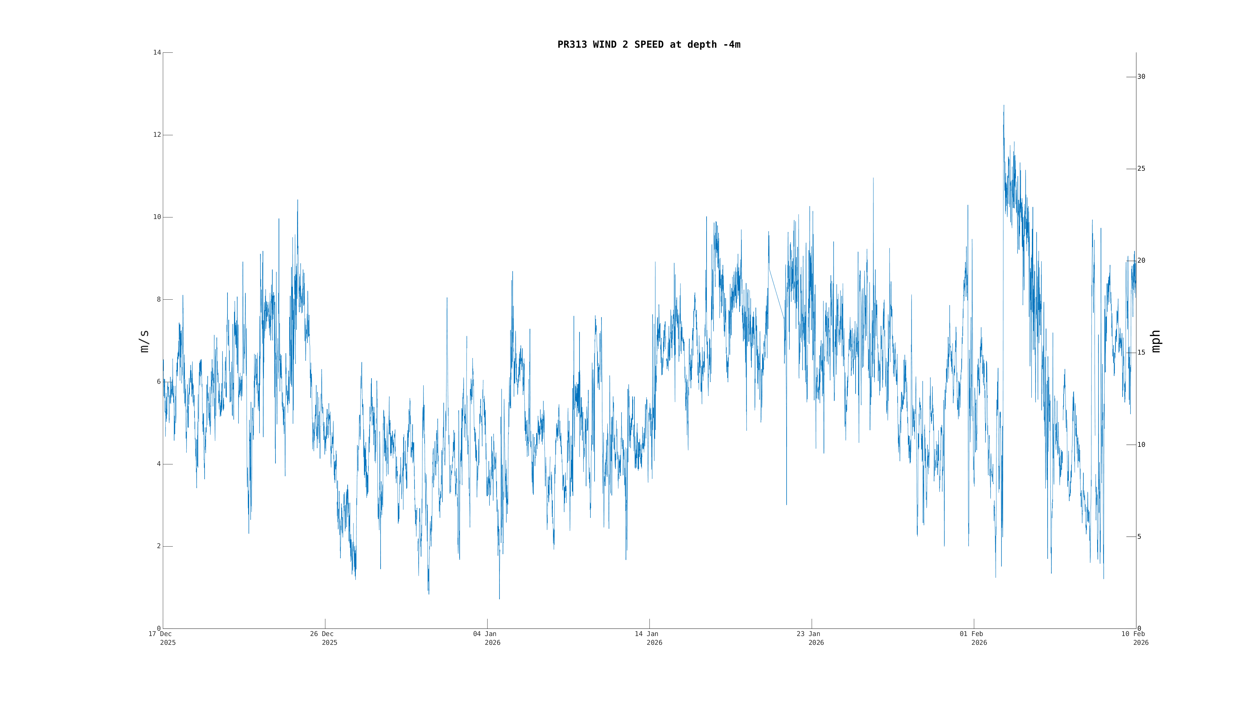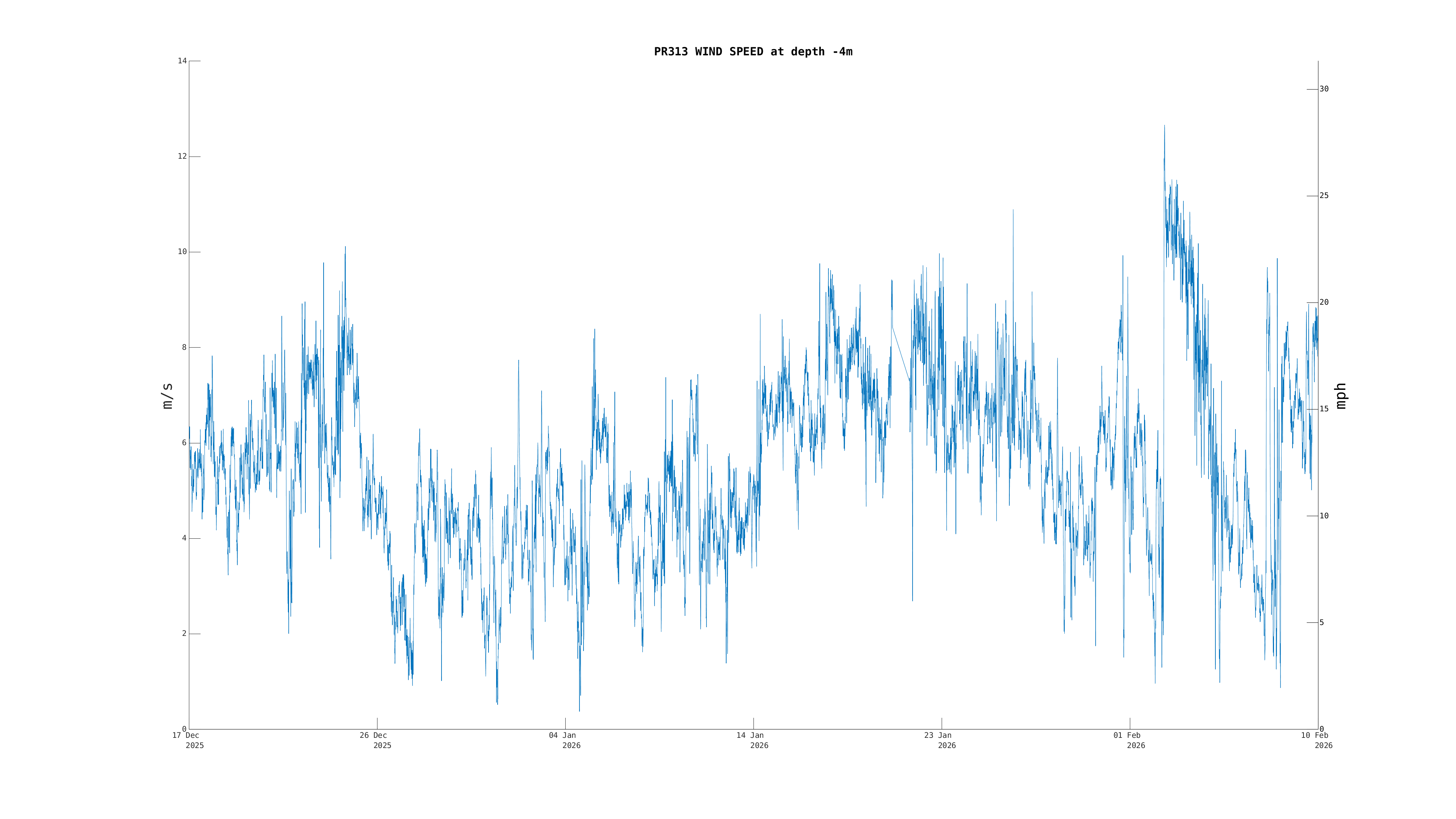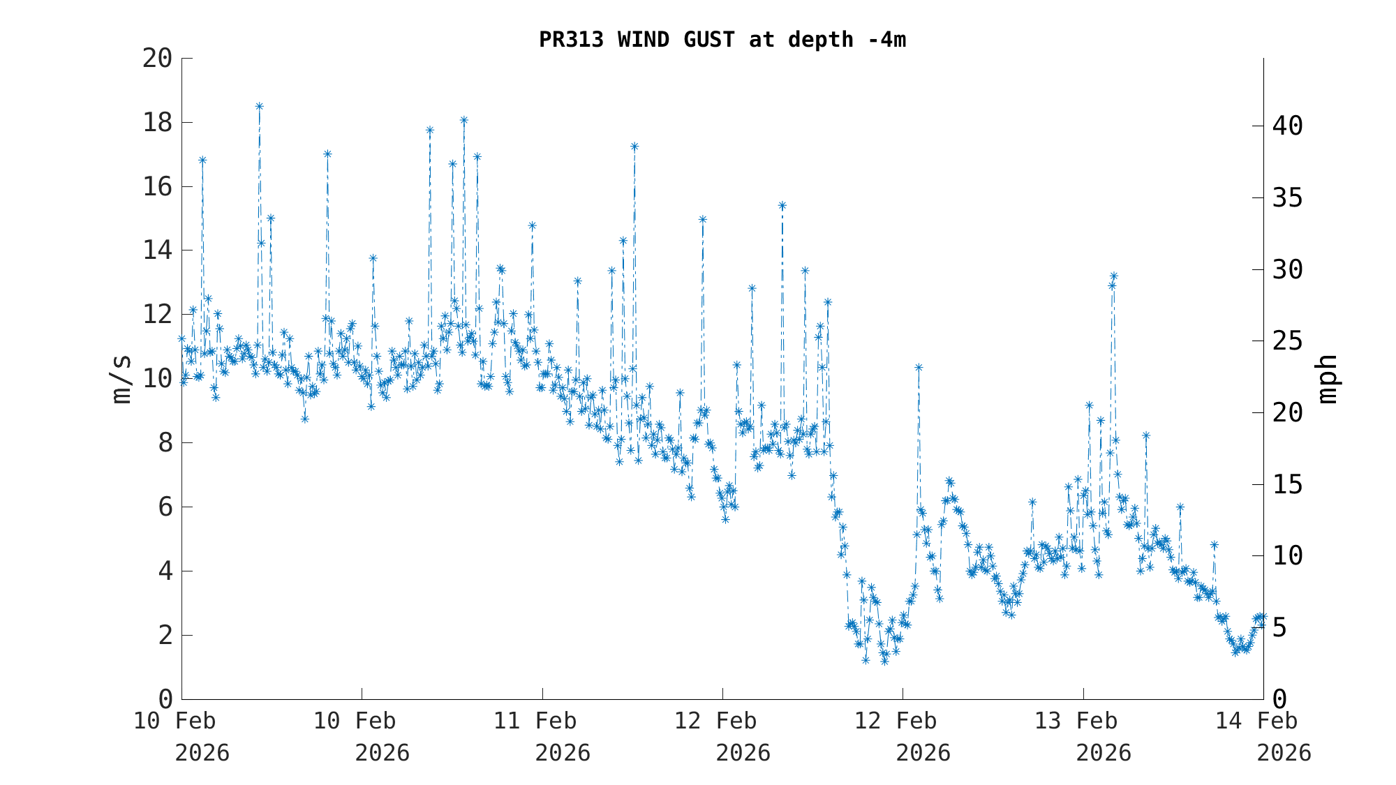 | Wind Speed (-4m) | 3.5 m/s (8 mph, 7 kts) | 2026-02-14 16:30:00 |