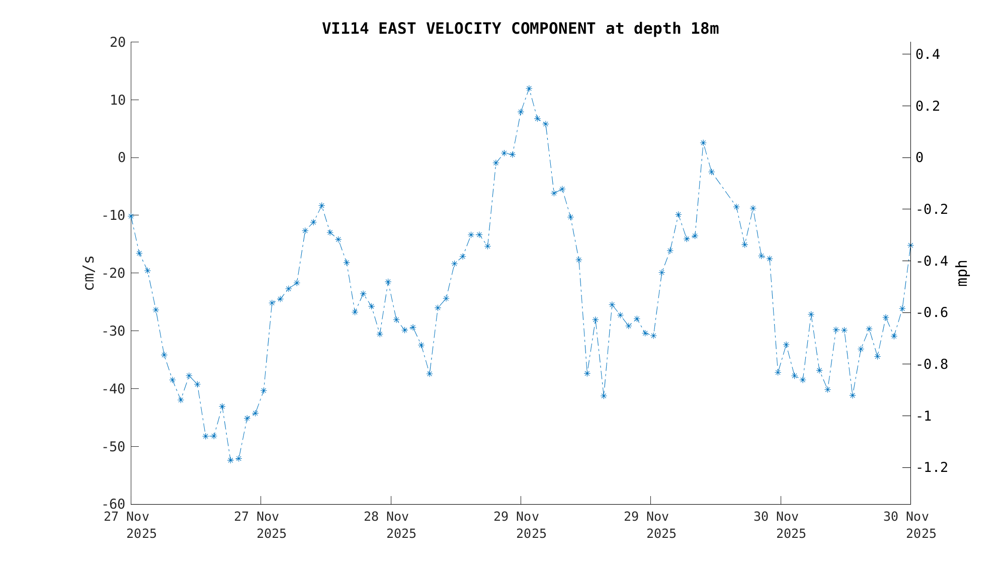 | East Current Velocity (18m) | 2.0 cm/s (0.04 kts) | 2025-12-15 00:00:00 |
